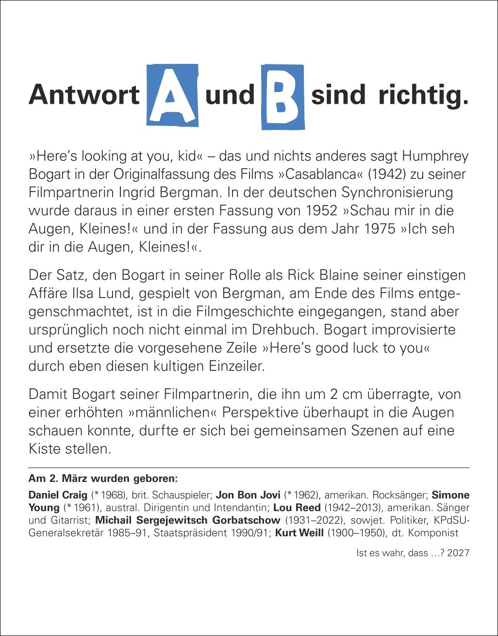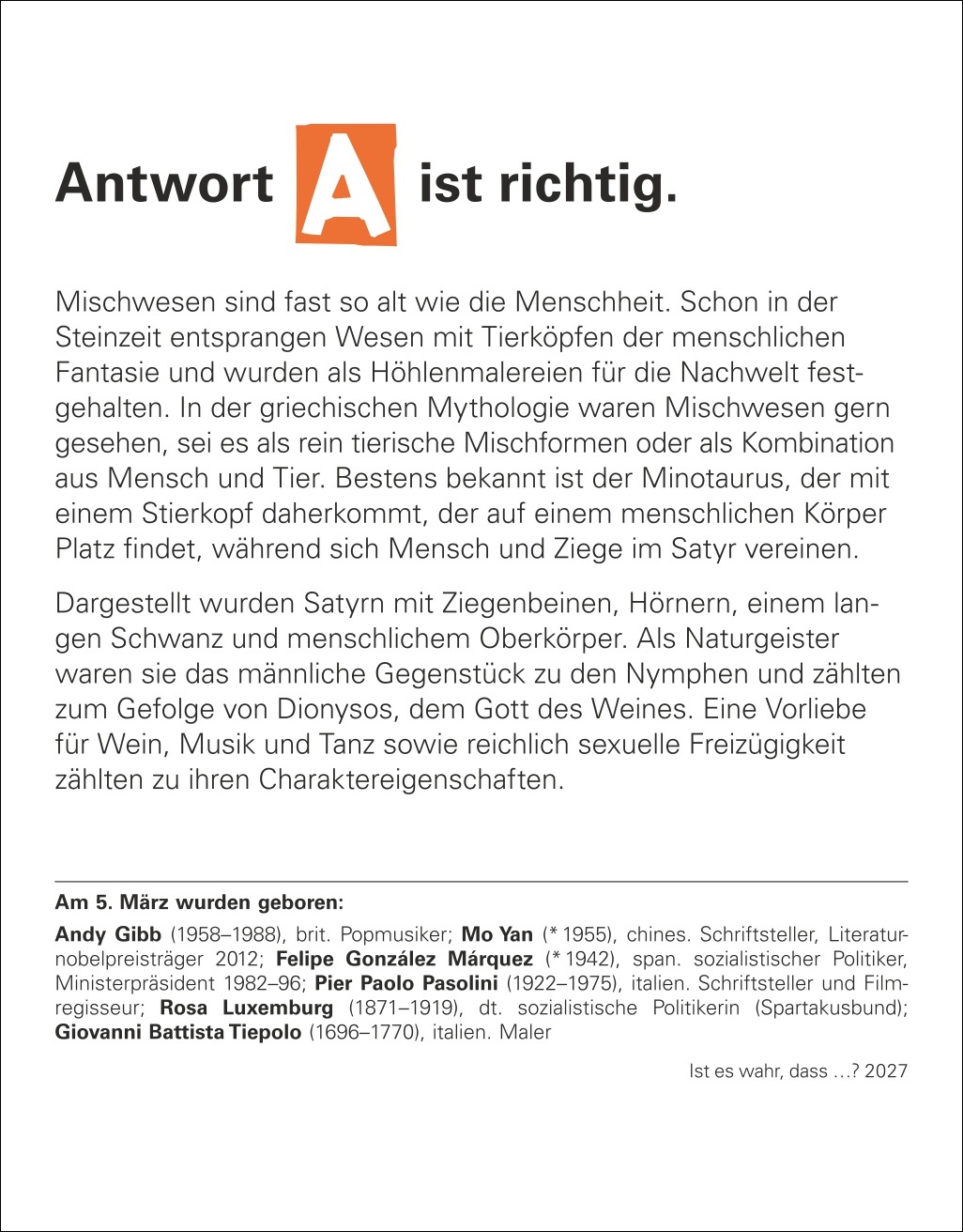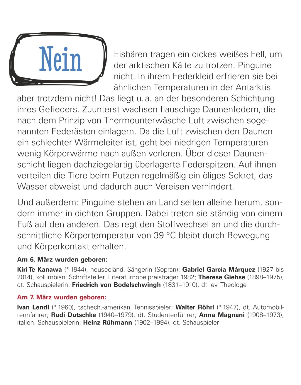 • Stimmt das denn wirklich? Testen Sie Ihr Allgemeinwissen mit kniffligen Fragen aus dem kleinen Tagesabreißkalender