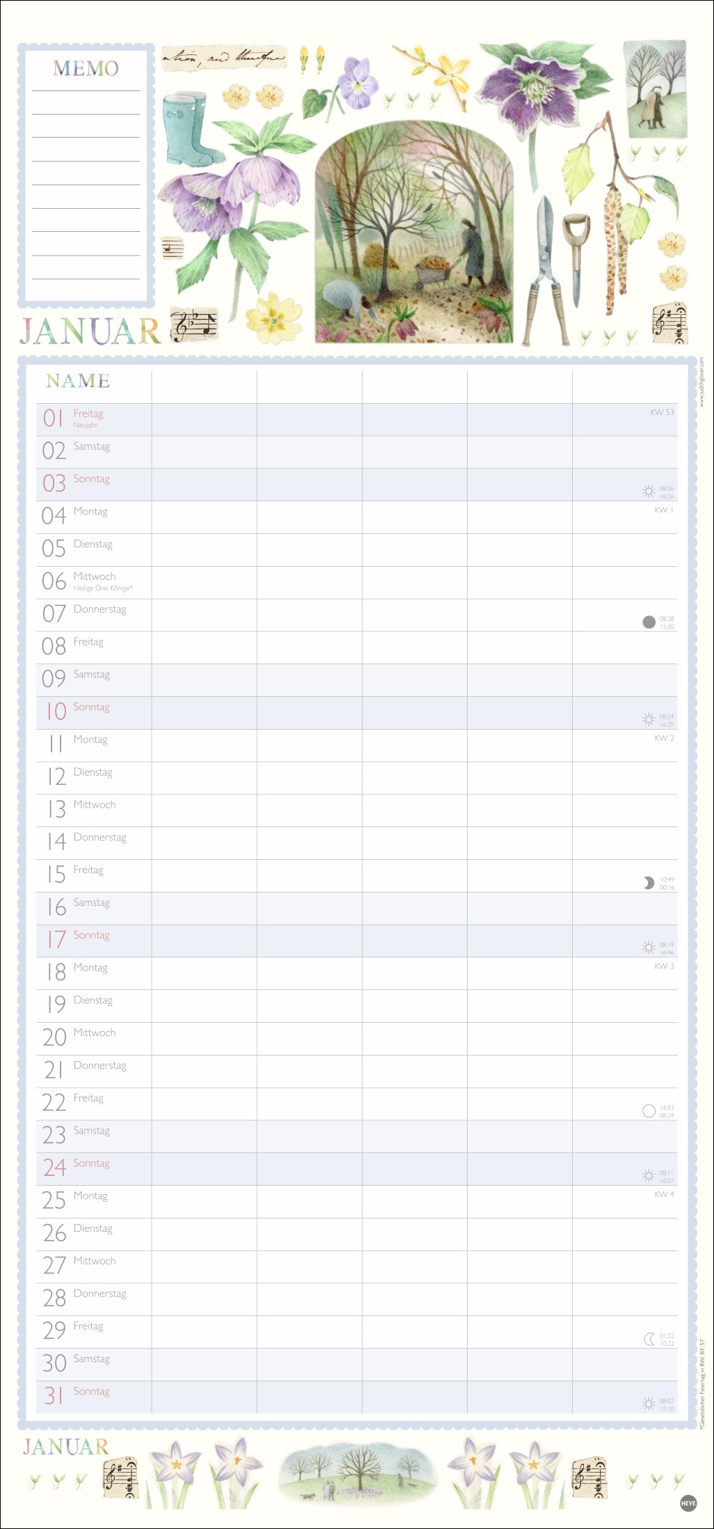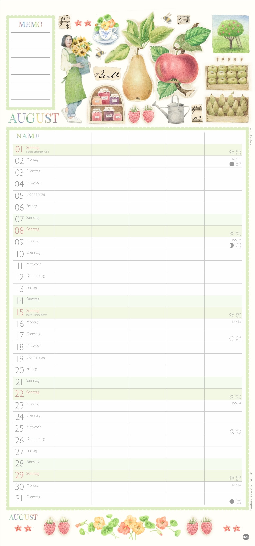 - Jeden Monat aufs Umblättern freuen: Planer mit detailfreudigen Illustrationen, von zarten Blüten bis hin zu wertvollen Schätzen aus dem Obst- und Gemüse-Garten