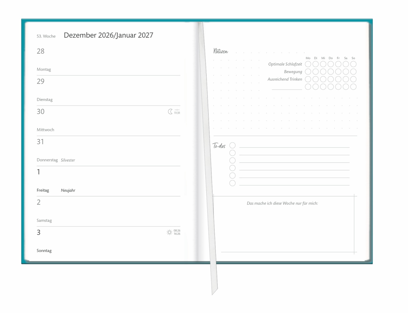 - Was steht diese Woche Wichtiges an? Buchkalender mit viel Platz für Notizen, mit dem Sie stilvoll den Überblick behalten