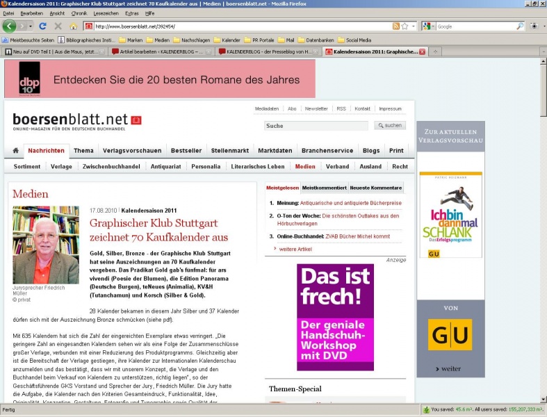 Graphischer Klub Stuttgart zeichnet 70 Kaufkalender aus