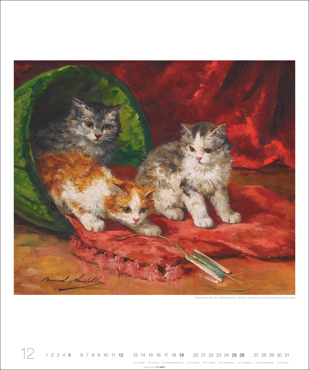 - Ein Kunstkalender im Großformat, der alle Katzenliebhaber:innen begeistert: Possierliche Kätzchen in abwechslungsreichen Stilen und Blickwinkeln