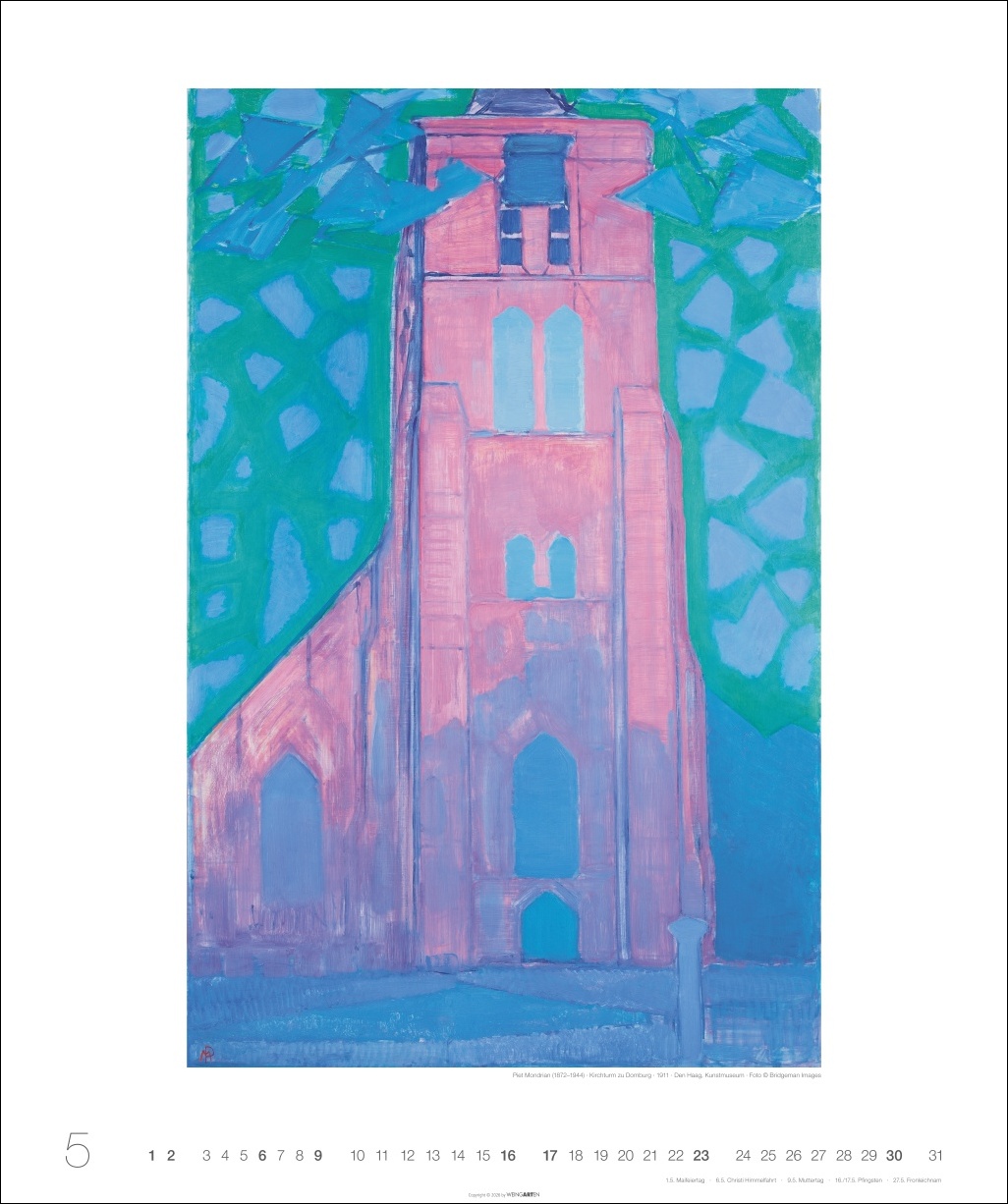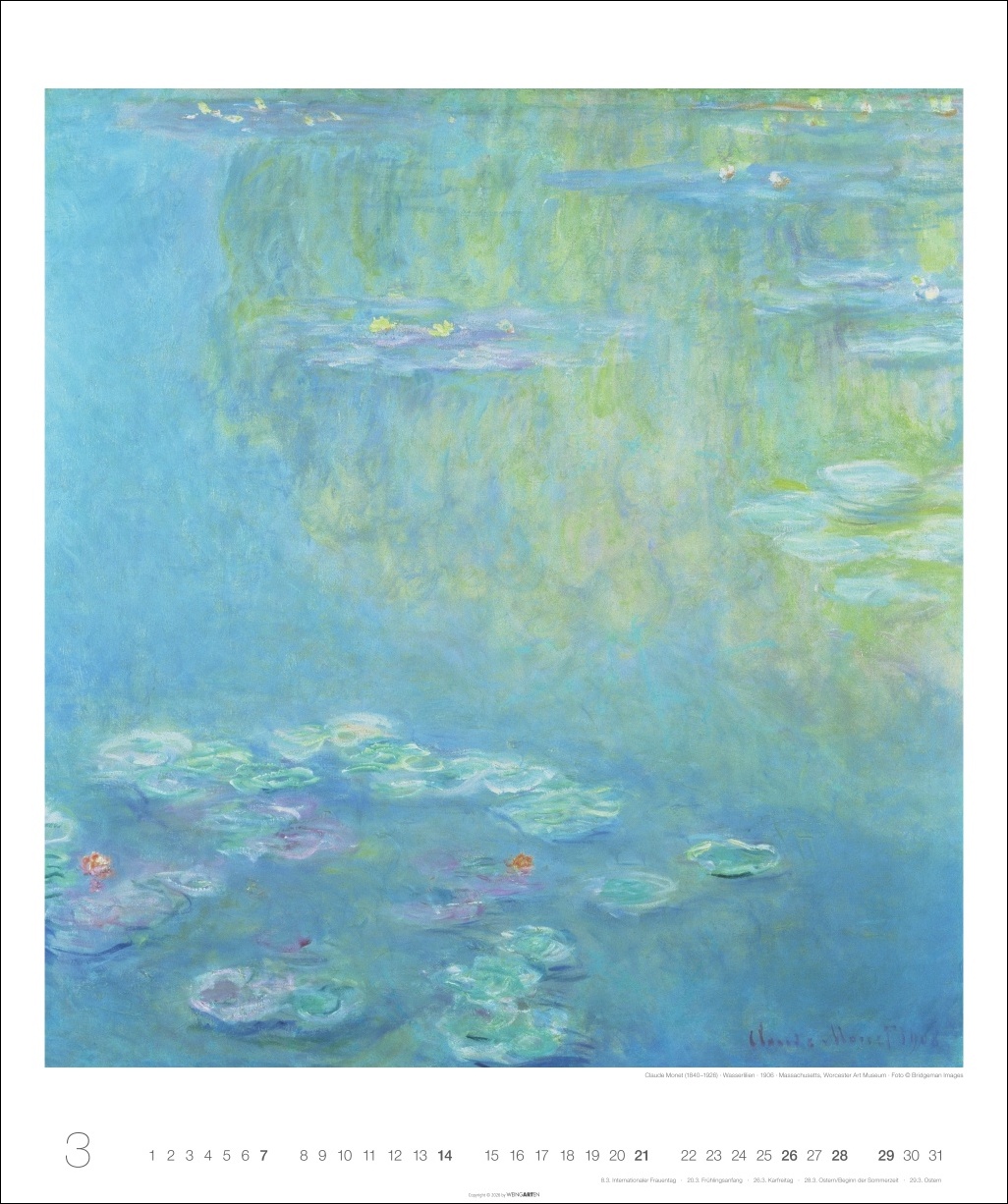 - Kunstkalender im Großformat 46 x 55 cm mit internationalem Kalendarium: ein Blickfang für besonderes Ambiente