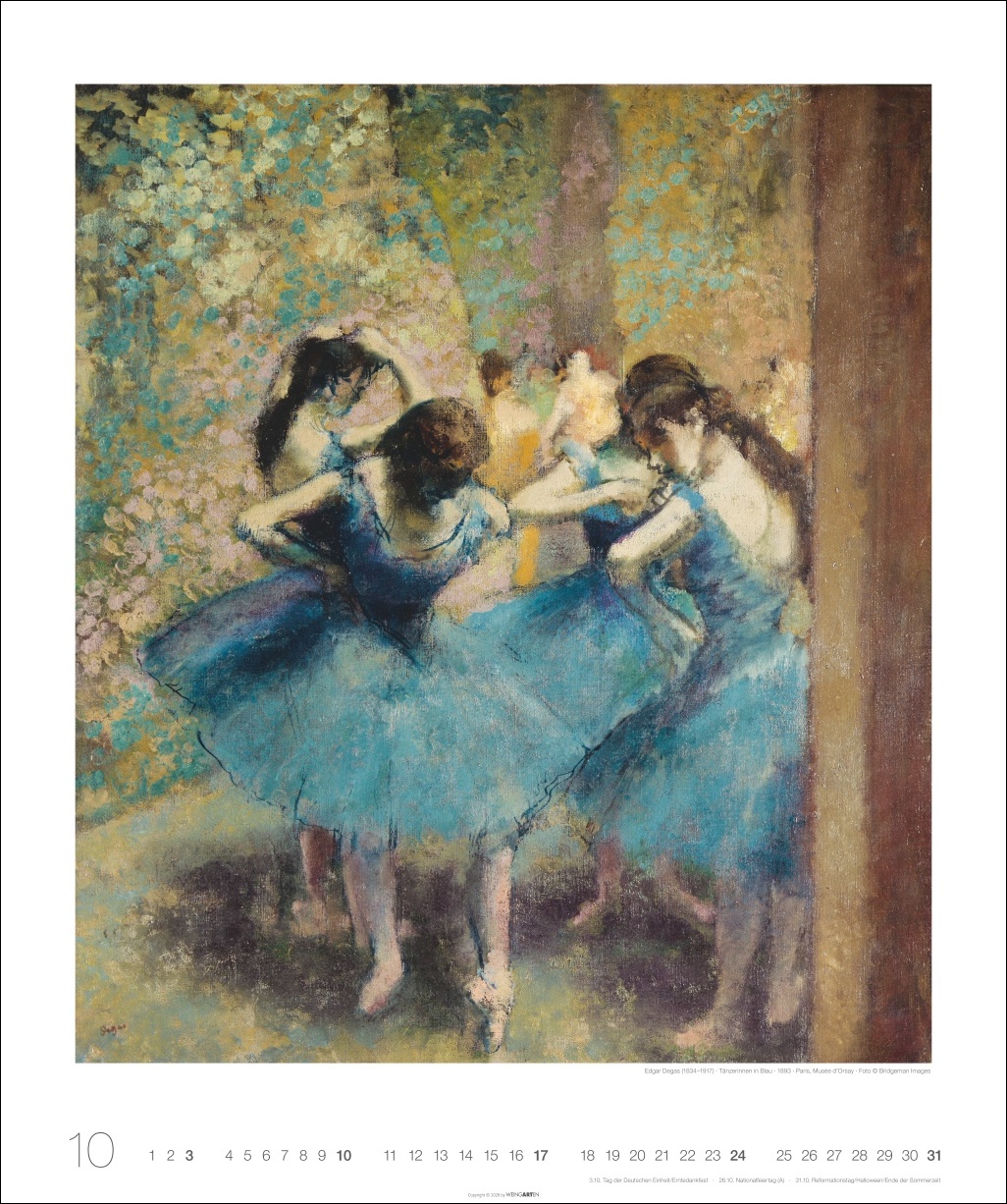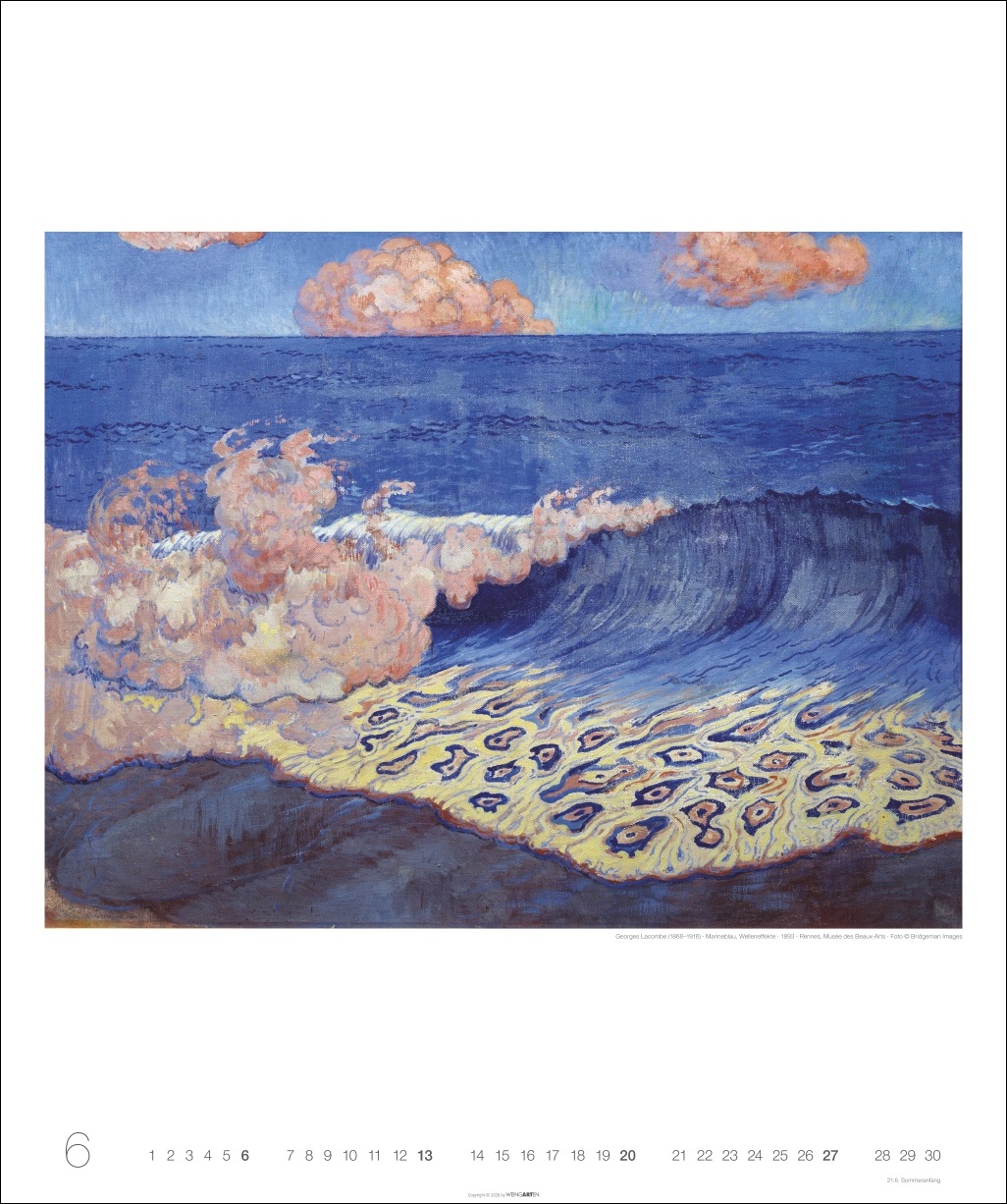 - Großer Wandkalender in allen Nuancen der Farbe Blau: Gemälde berühmter Künstler:innen der Klassischen Moderne für die Ewigkeit!