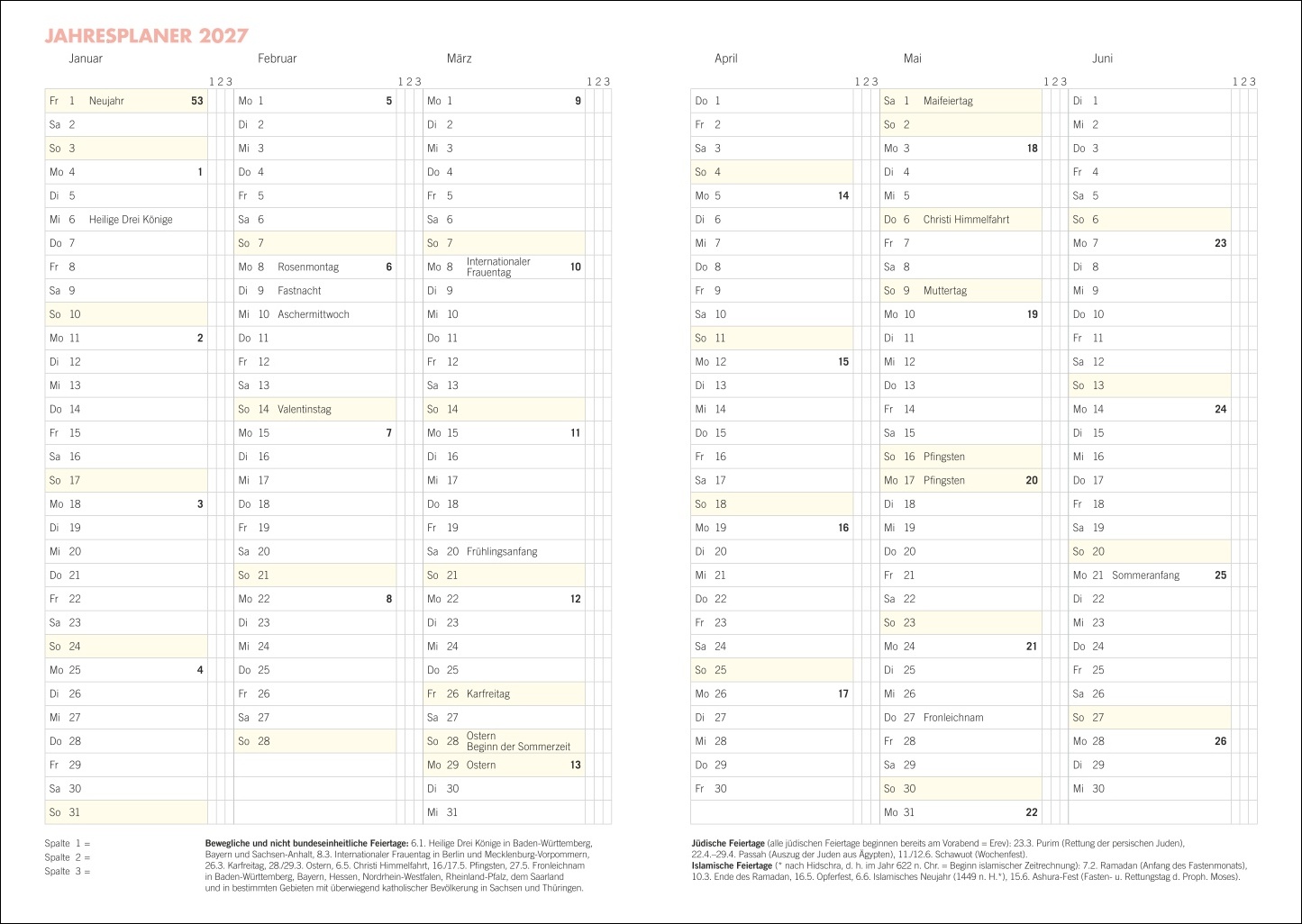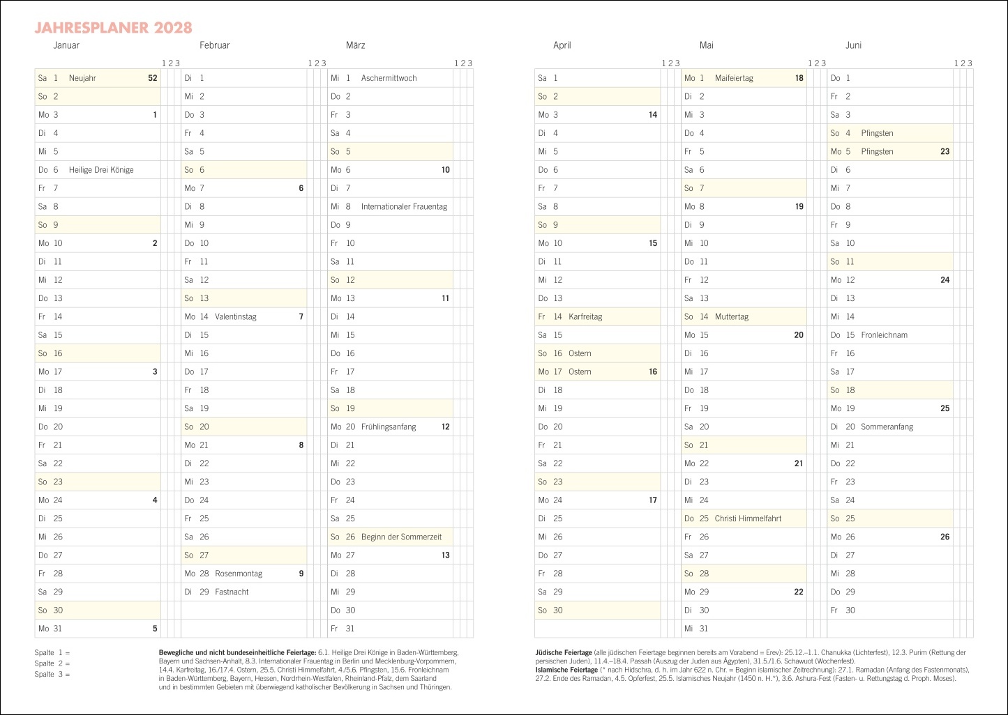 - Beliebt seit 50 Jahren: klassisches Journal und Terminplaner im handlichen A5-Format, praktische Alltags-Infos und Lesebändchen
