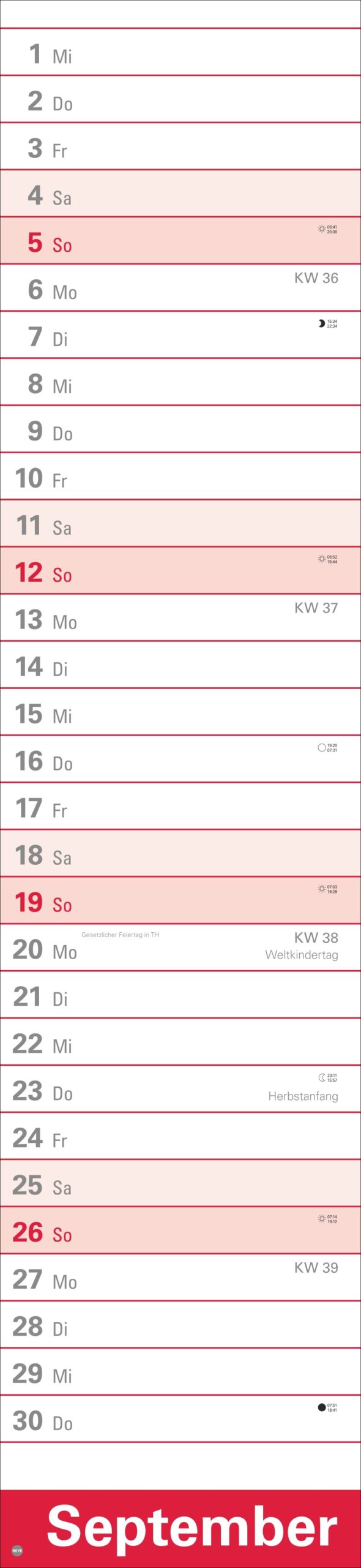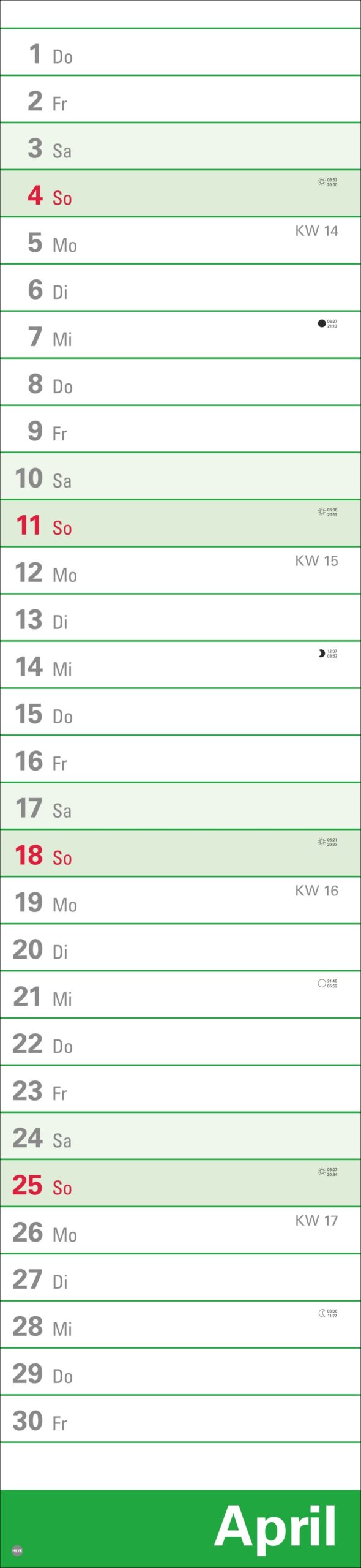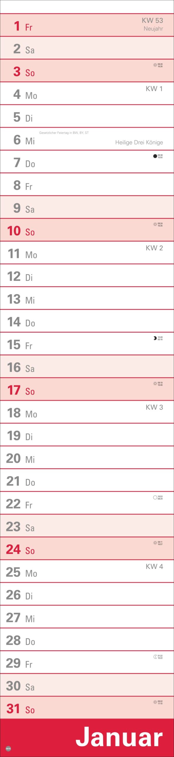 - 16 x 70 cm sind viel Raum für Terminübersicht, wichtige Daten und vorausschauende Planung