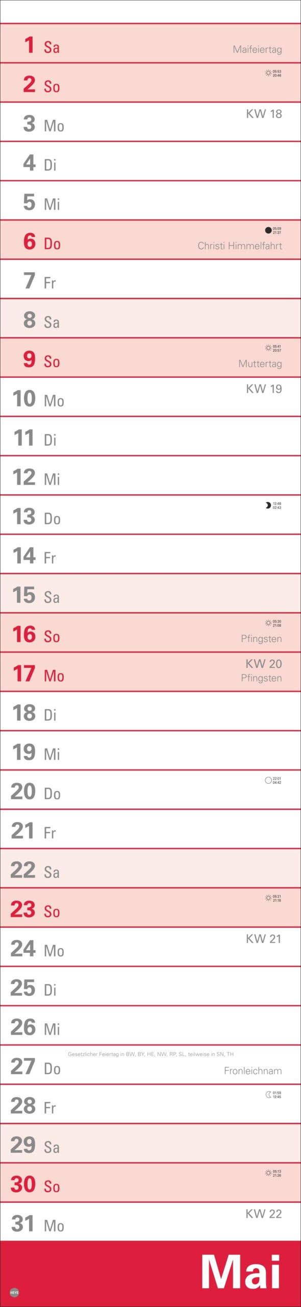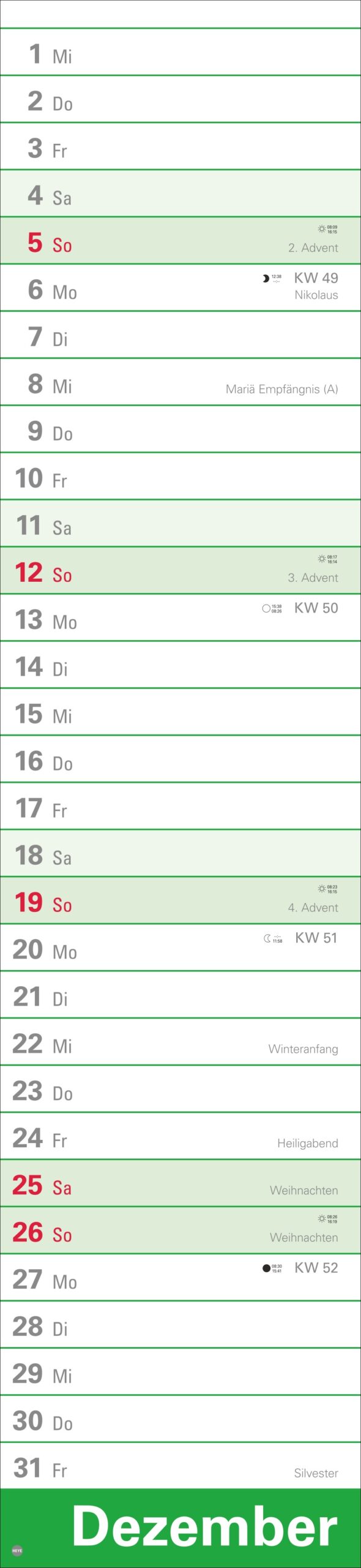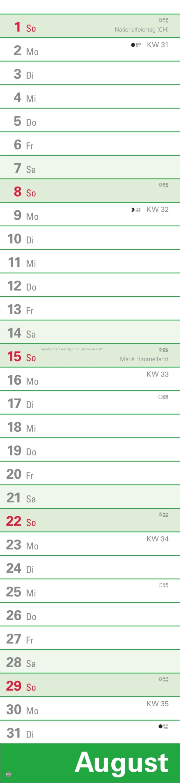 - 16 x 70 cm sind viel Raum für Terminübersicht, wichtige Daten und vorausschauende Planung