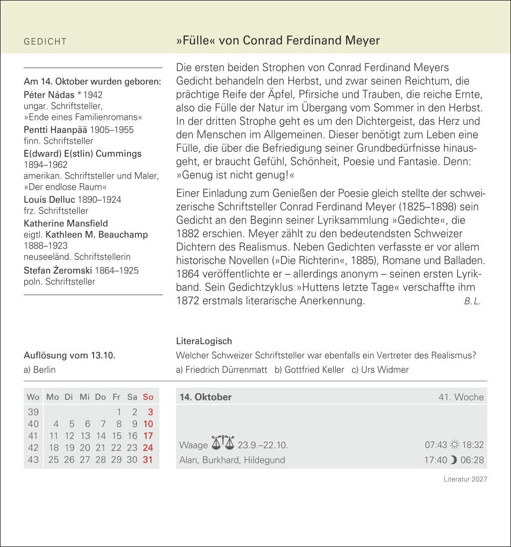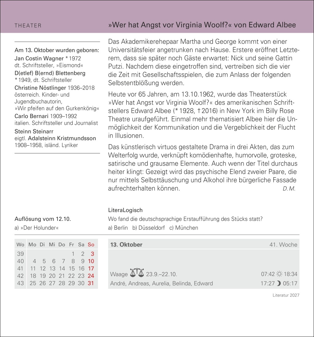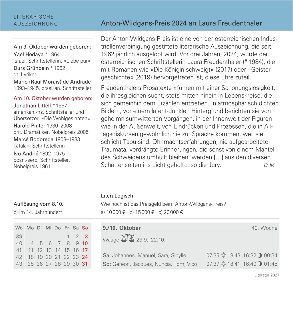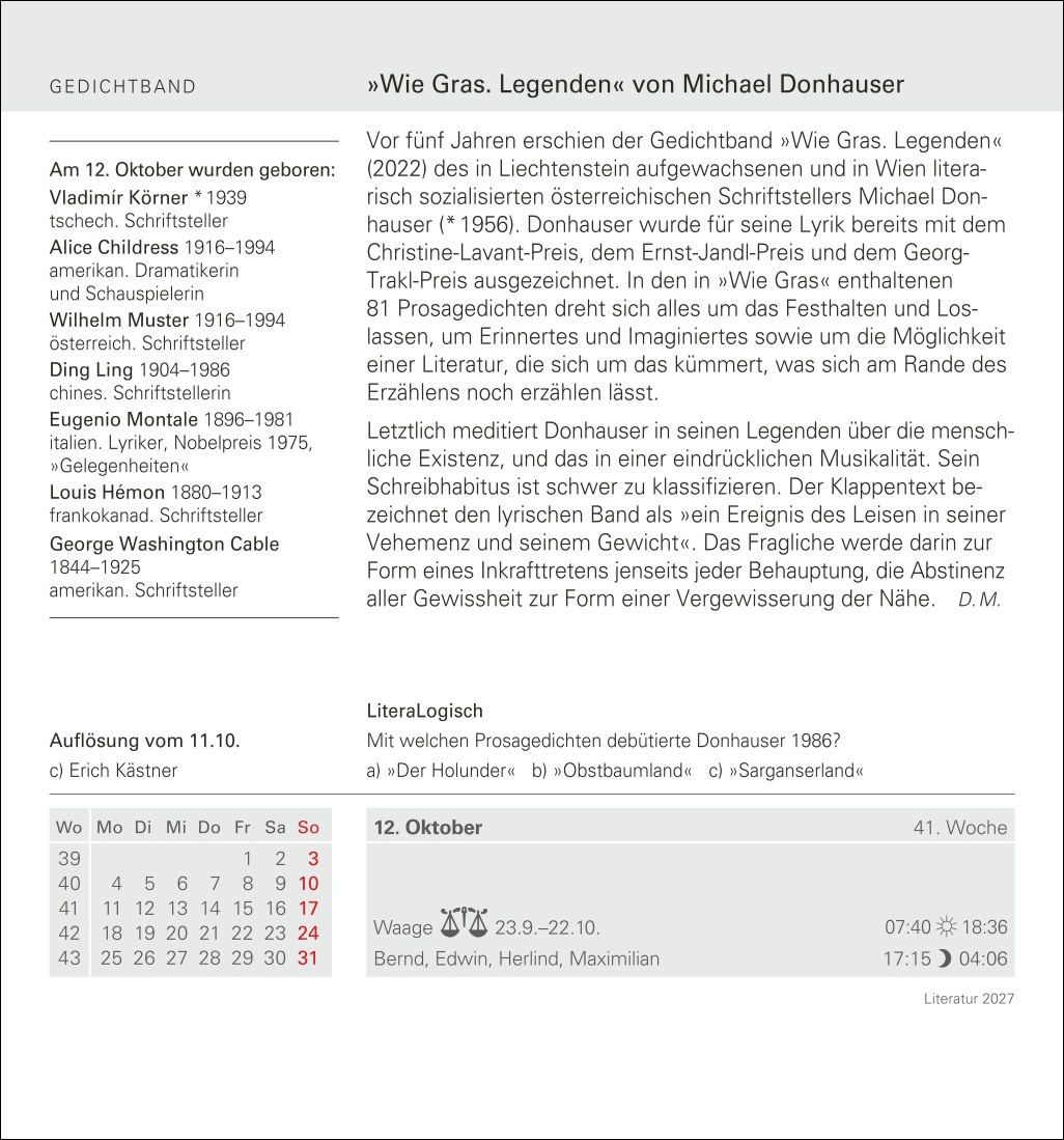 - Literarische Anregungen für jeden Tag, von Roman über Hörbuch bis zur Lyrik: Der Harenberg Literatur-Abreißkalender 2027