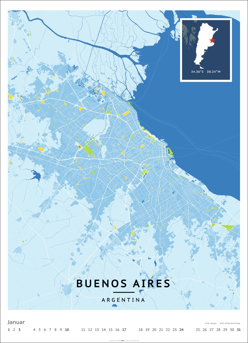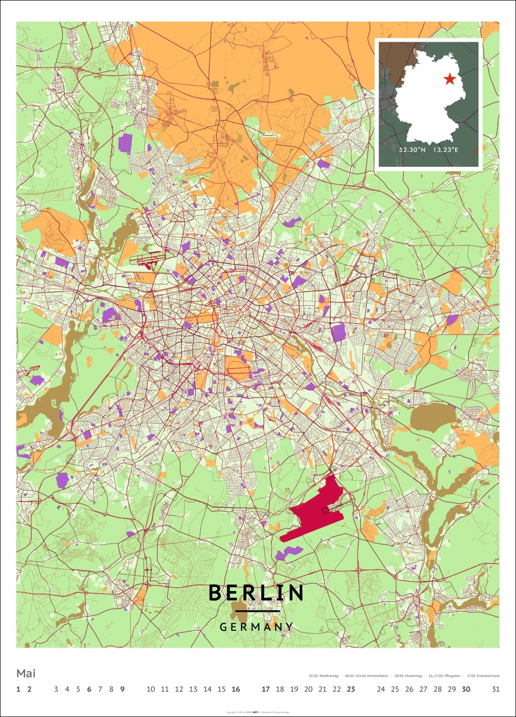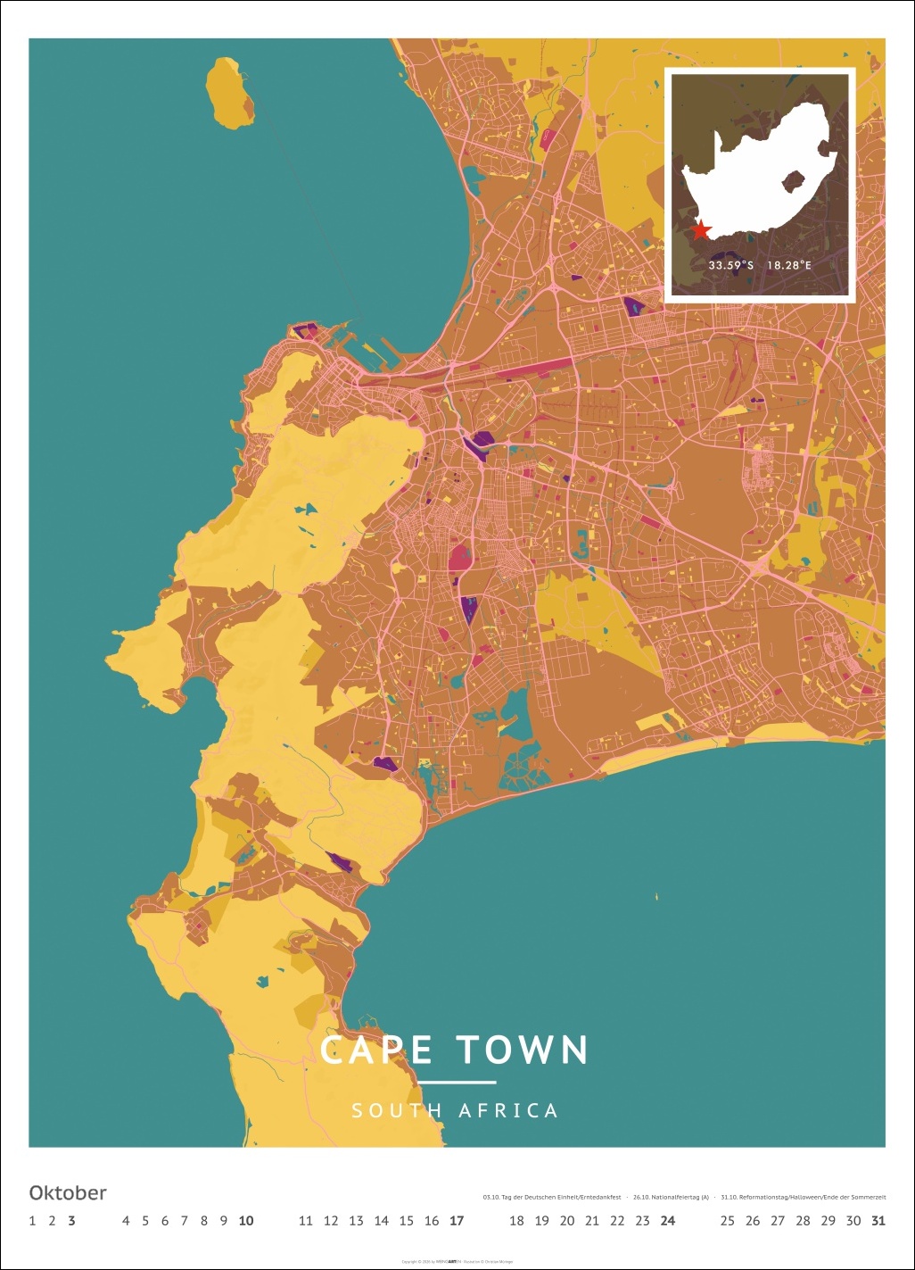 - Für alle Liebhaber von moderner Kartenkunst und ausgefallenen Interior-Ideen: Großer Wandkalender mit Farbkontrasten als Eye-Catcher