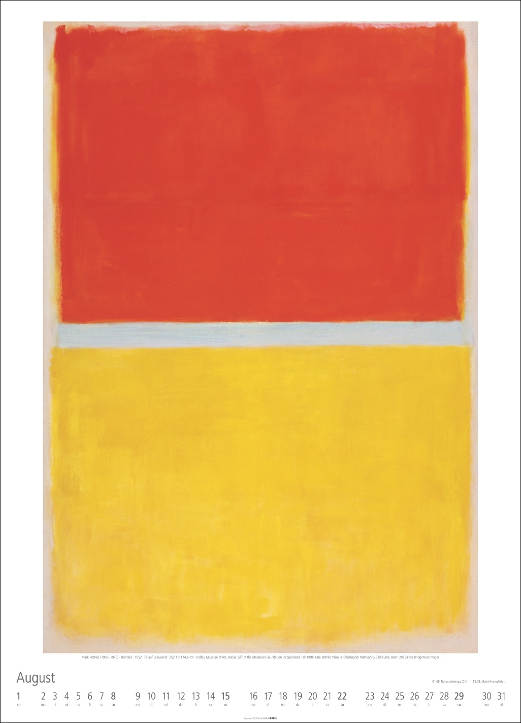 - Meisterwerke vom Begründer der Farbfeldmalerei: Mark Rothko im neuen Jahres-Wandkalender 2027