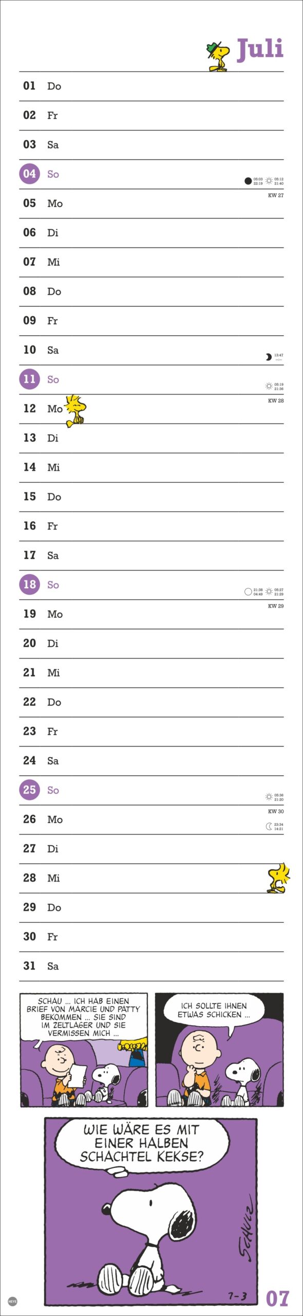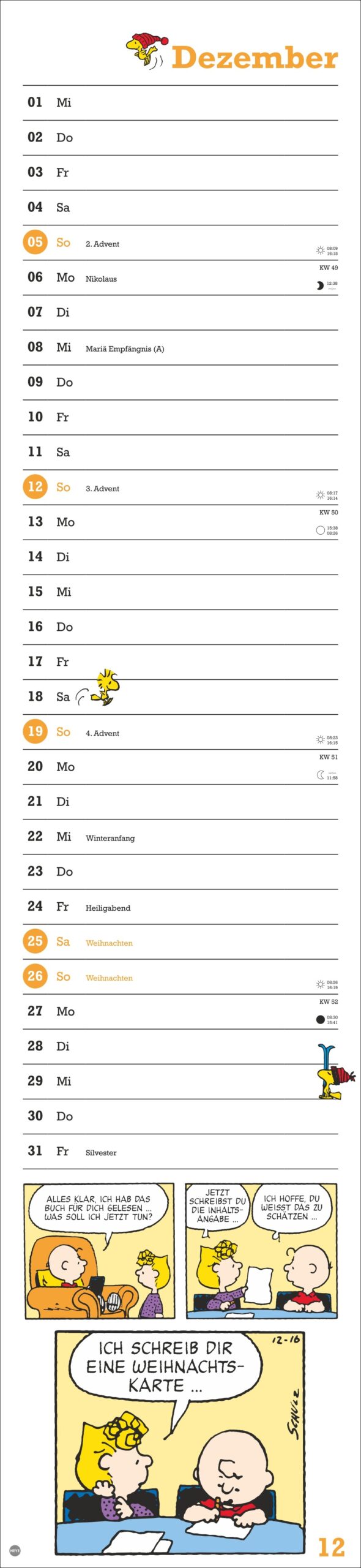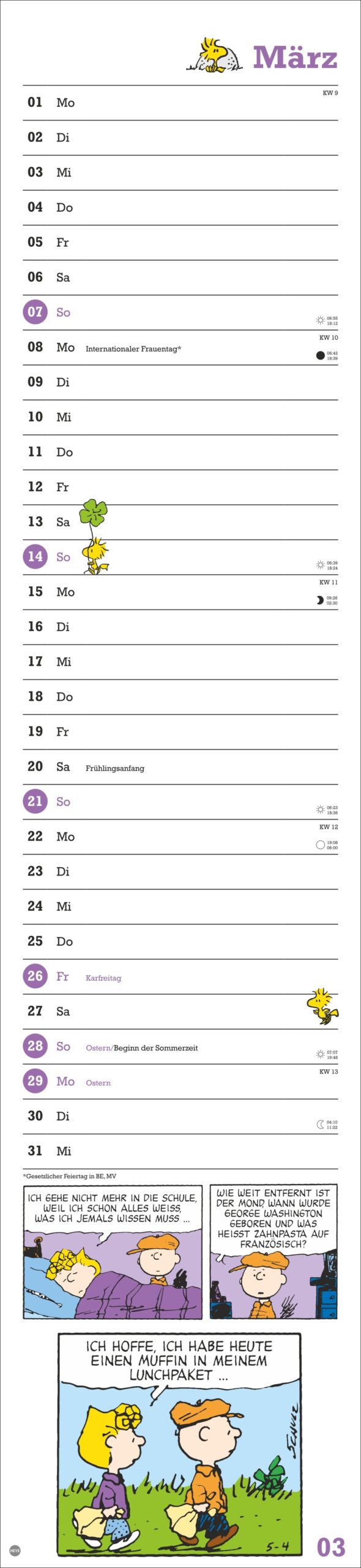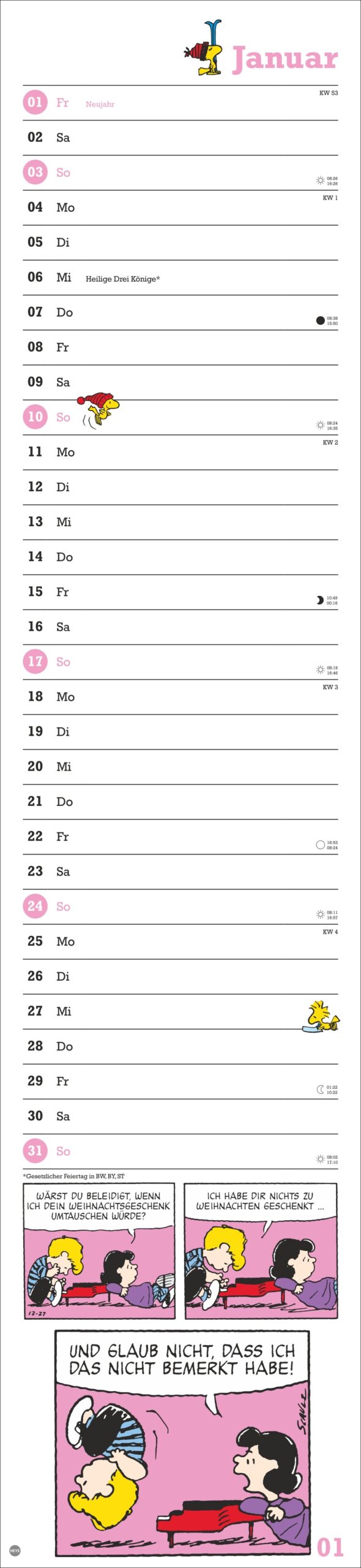 • Der Streifenkalender für alle Fans der berühmten Comics sorgt für Überblick im Termindschungel