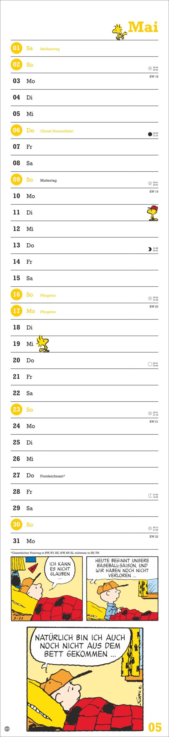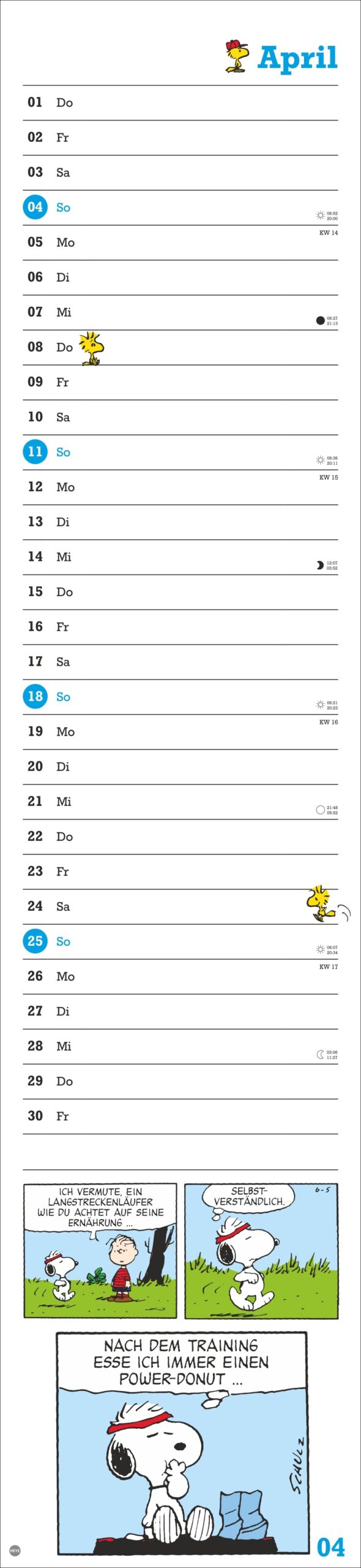 • Der Wandkalender im Format 16 x 69,5 cm: viel Platz für Eintragungen und Comic-Strips voll typischen Peanuts-Humors