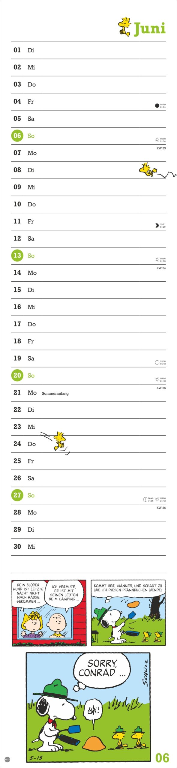 • Snoopy, Woodstock und Co. in einem länglichen Kalender für alle, die Terminübersicht und Cartoon-Liebe verbinden wollen