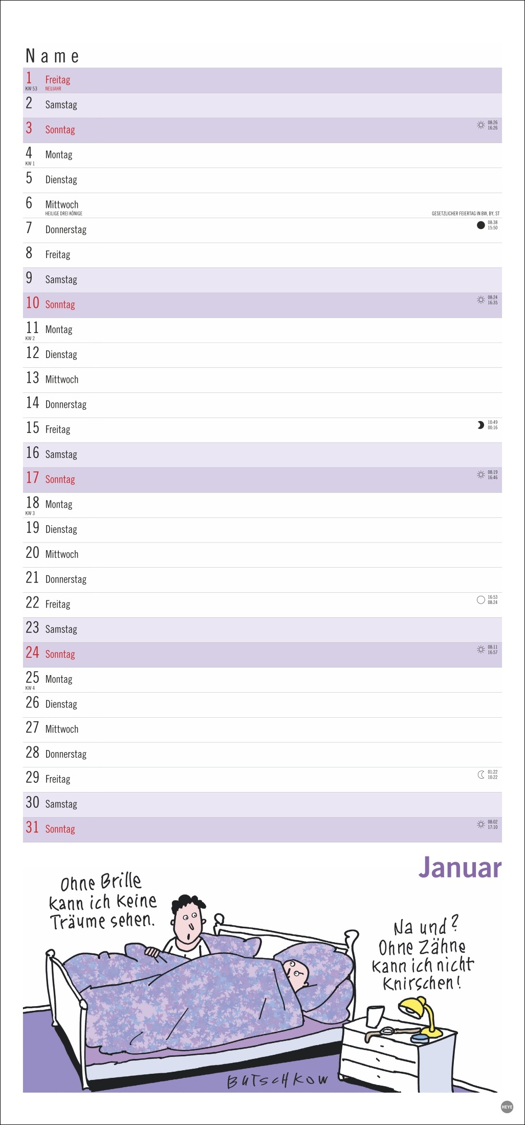 • Der beliebte Butschkow-Familienplaner, zugeschnitten auf die neuen Freiheiten des Renten-Alters