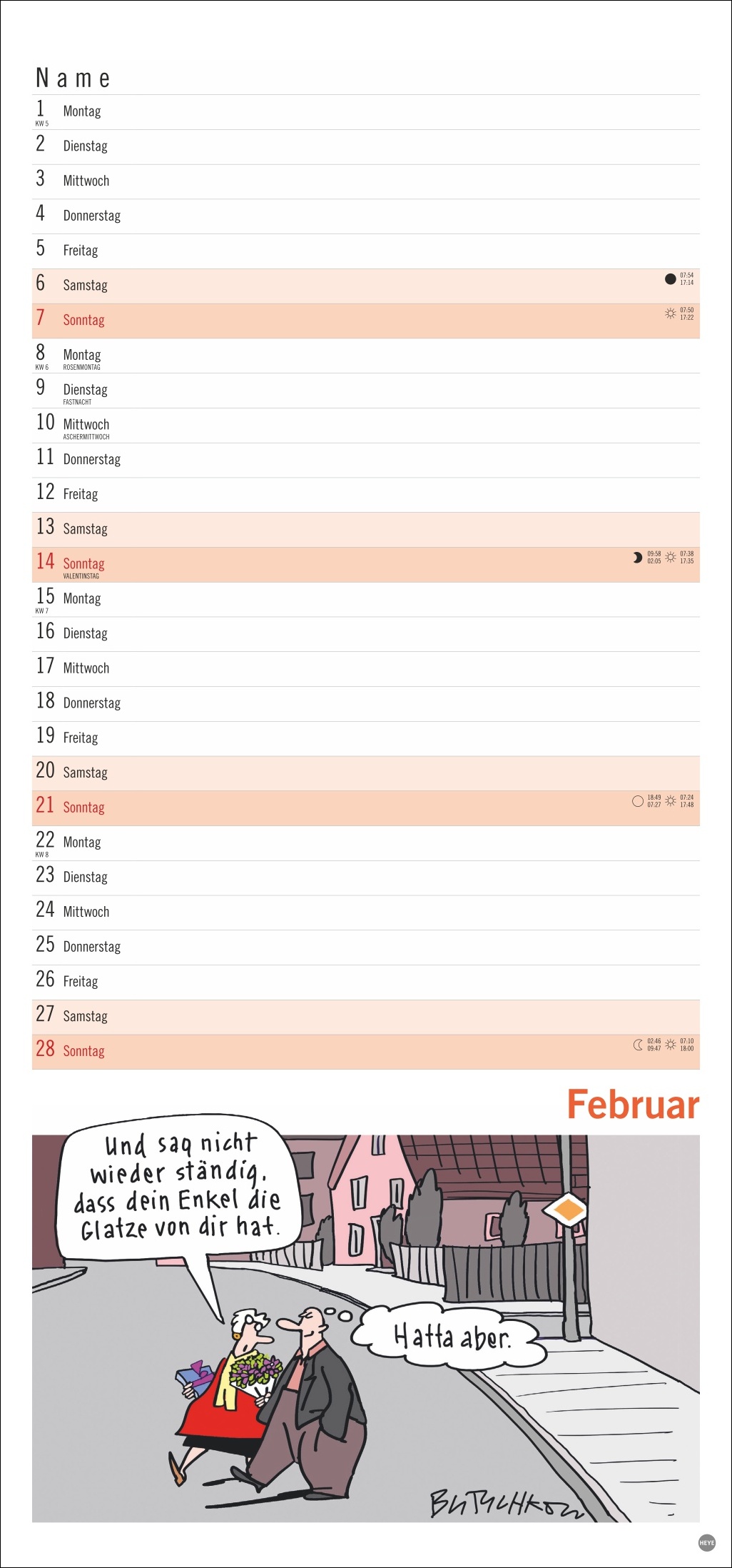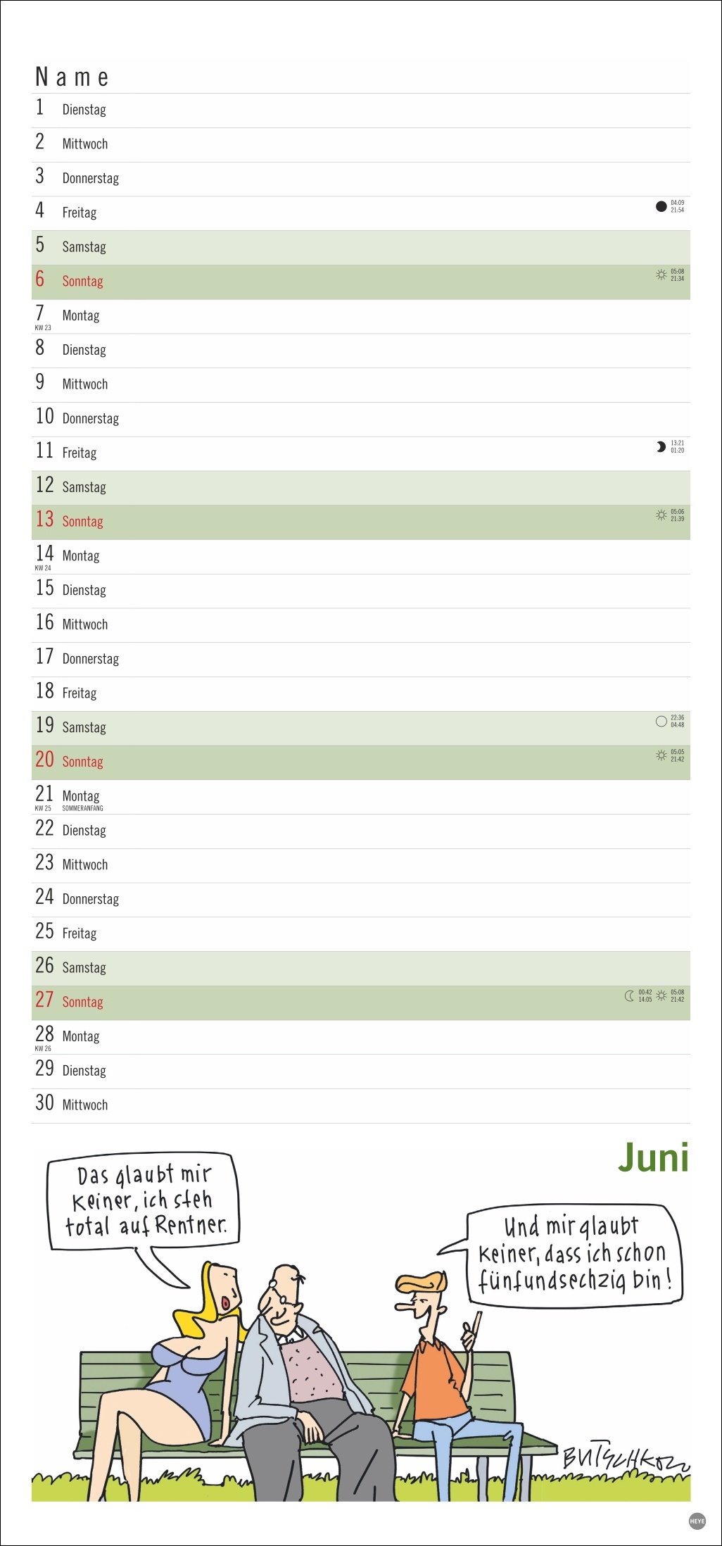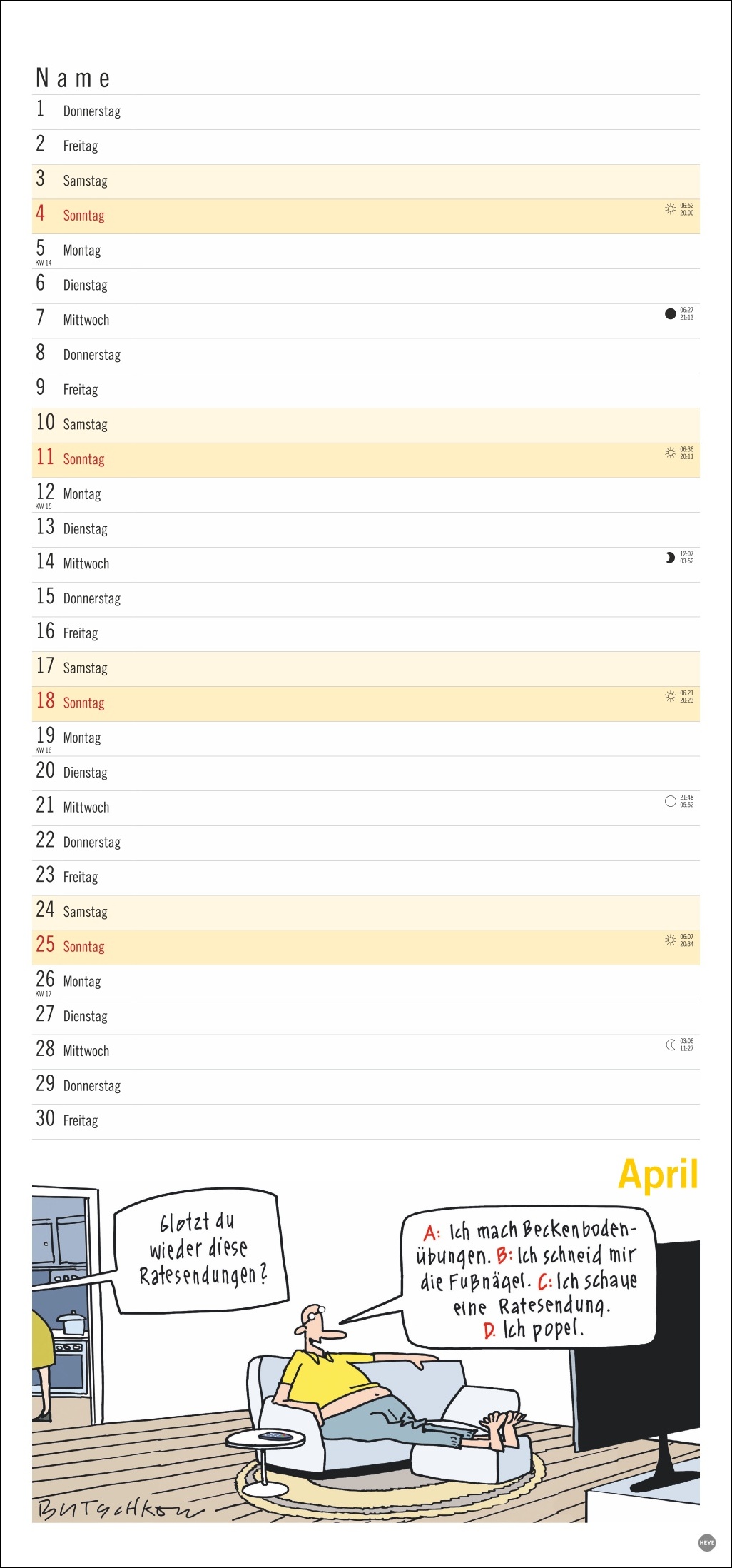 • Gut gelaunt die Freizeitaktivitäten im Ruhestand planen: Monatskalender mit den herrlich-pointierten Peter Butschkow-Cartoons