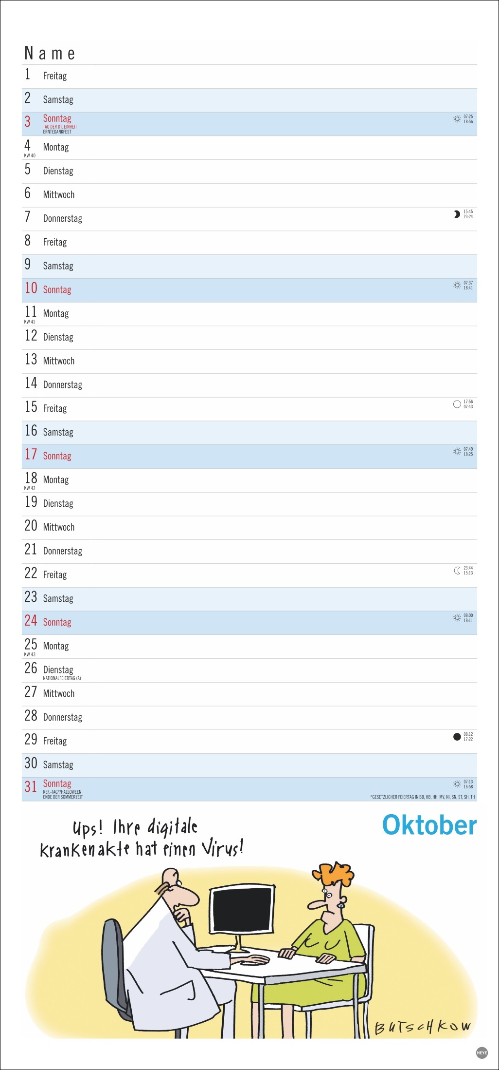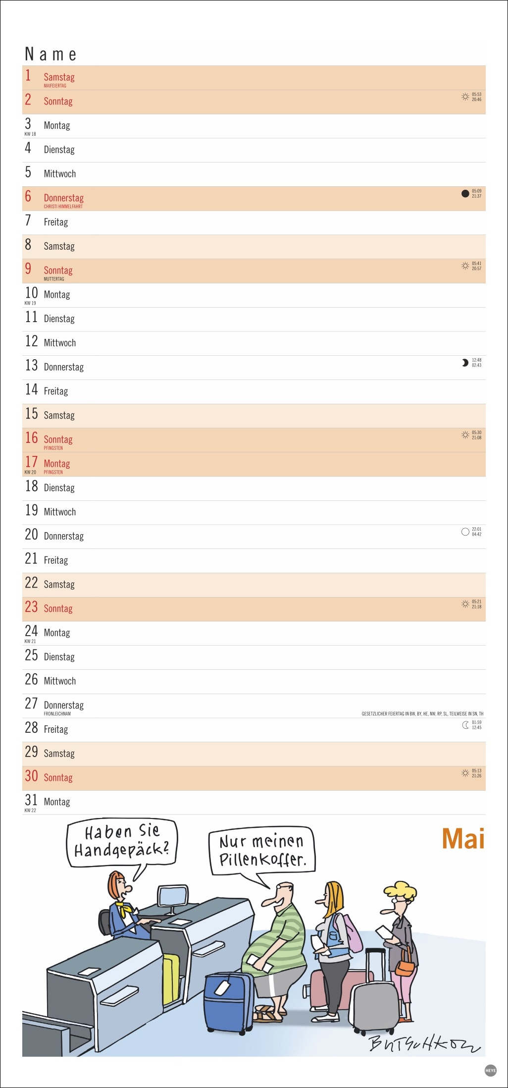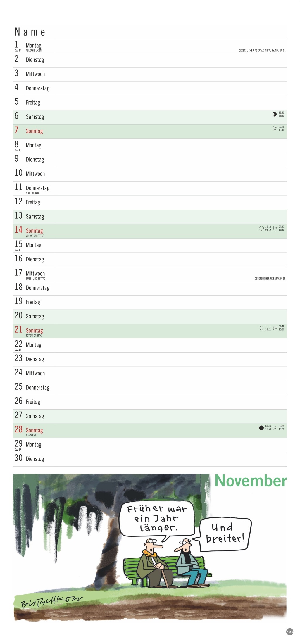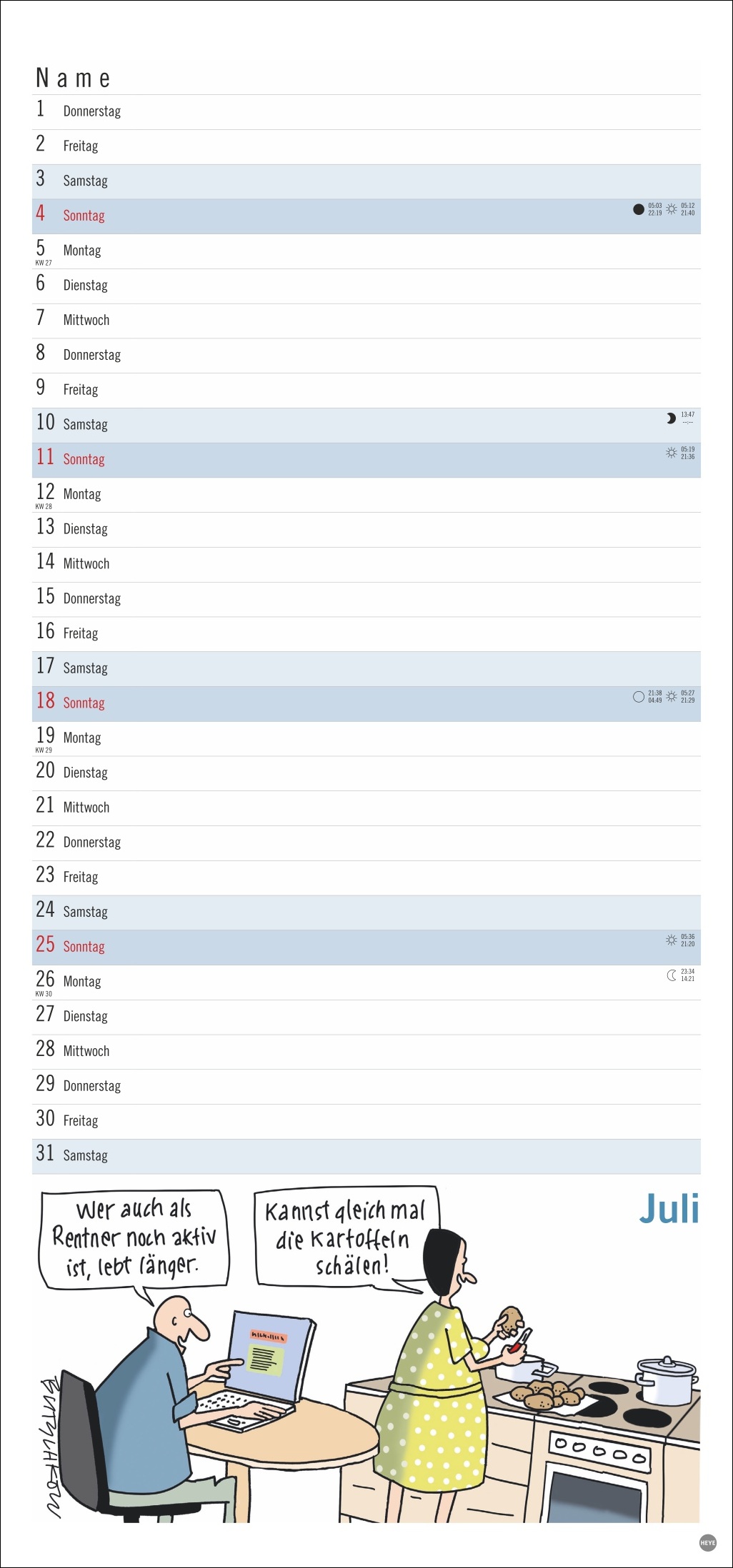• Gut gelaunt die Freizeitaktivitäten im Ruhestand planen: Monatskalender mit den herrlich-pointierten Peter Butschkow-Cartoons