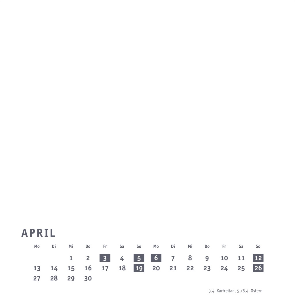 - Kalender im quadratischen Format mit weißer Grundfarbe als neutralem Hintergrund