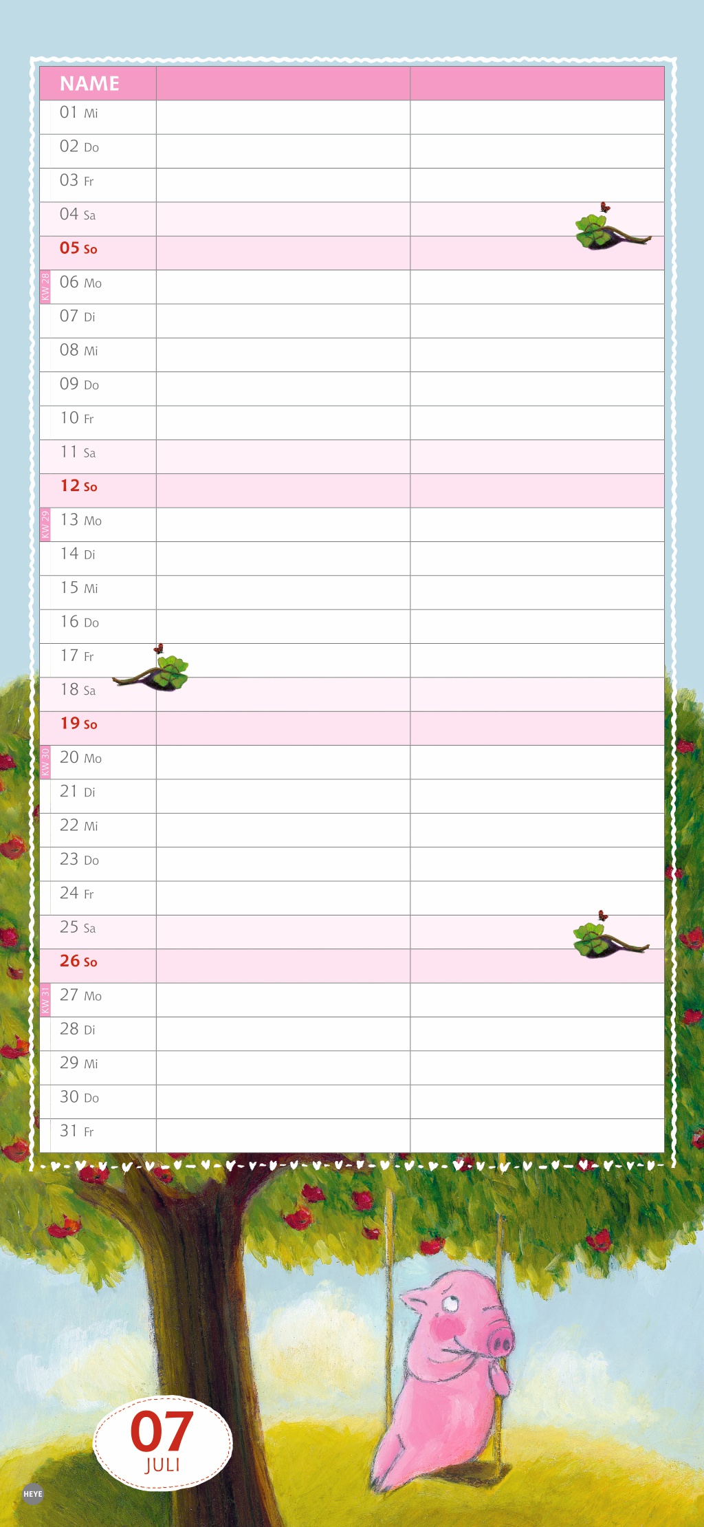 - Das verliebte Schweine-Pärchen in einem praktischen Terminkalender für die Wand im Format 16 x 34,7 cm