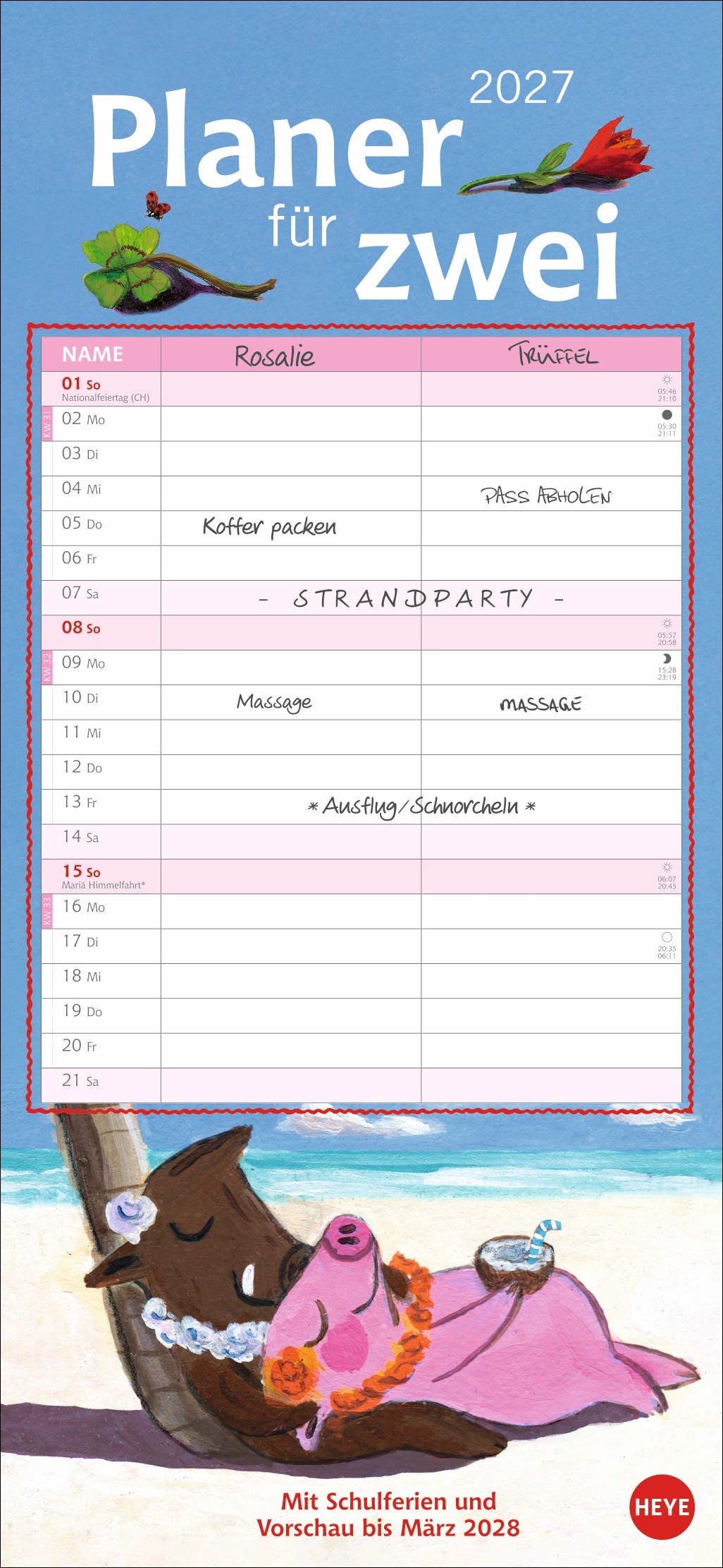 • Perfekt für frisch Verliebte und eingespielte Teams: Der Paarkalender mit zwei Spalten macht gemeinsame Planung zum Kinderspiel!
