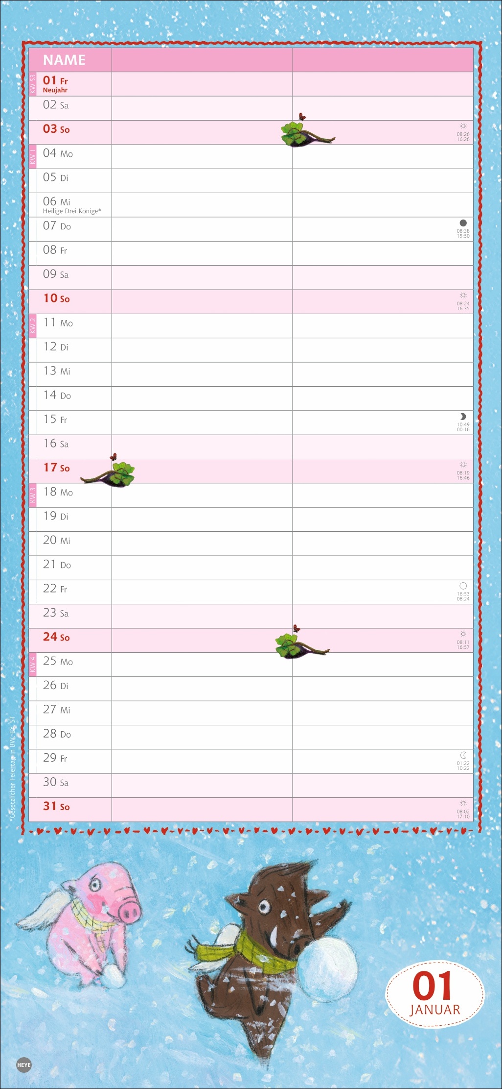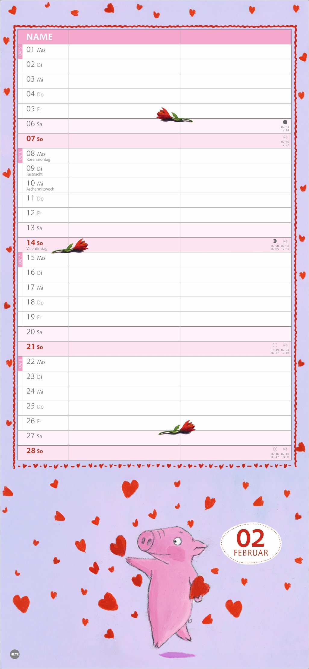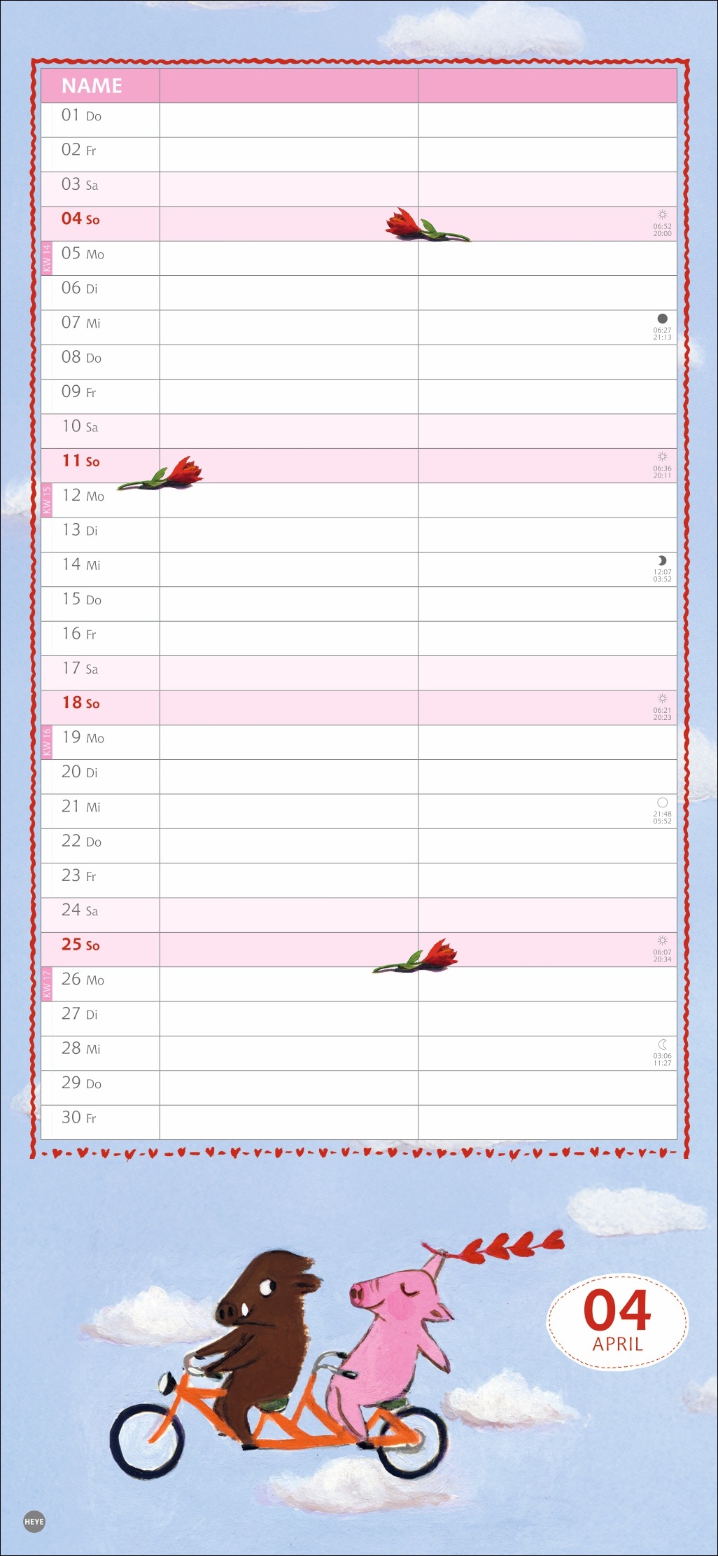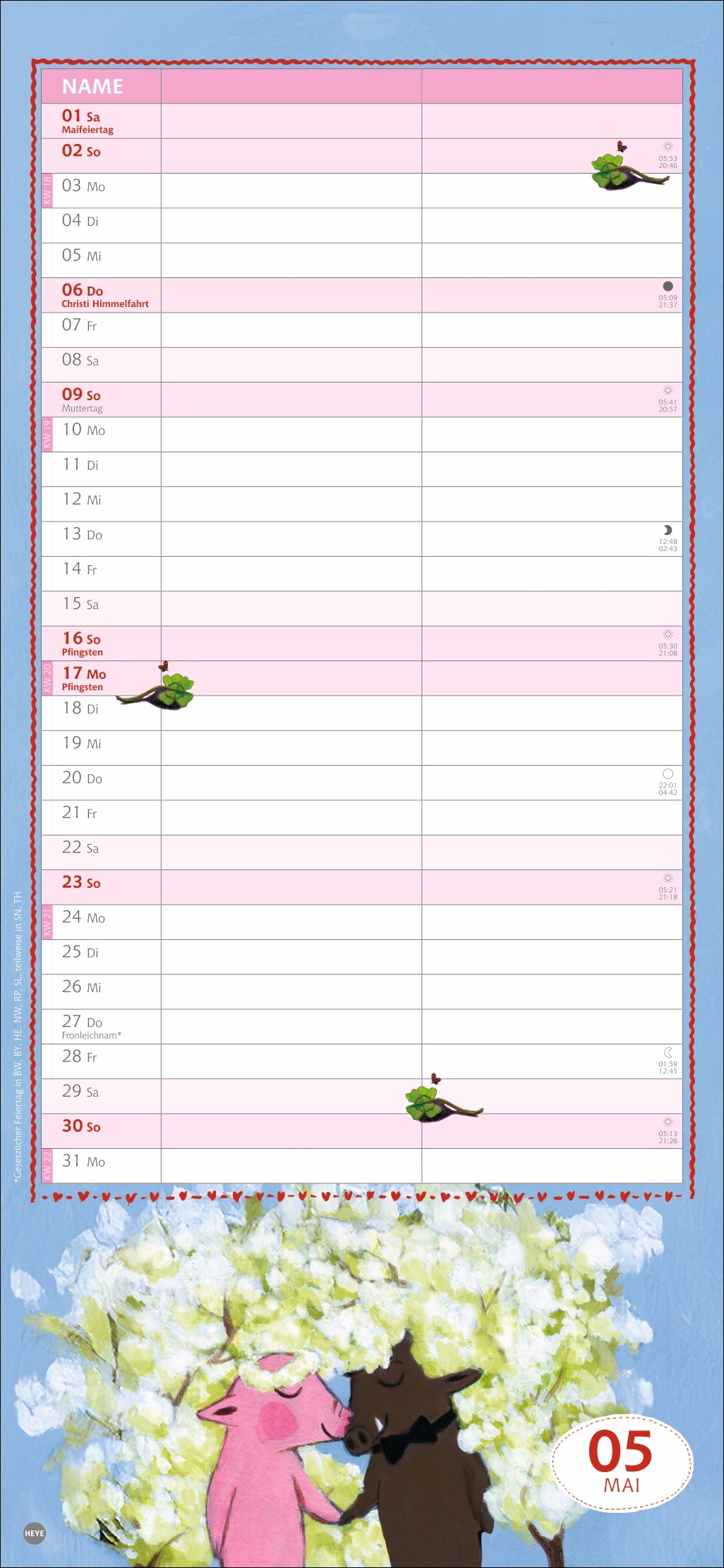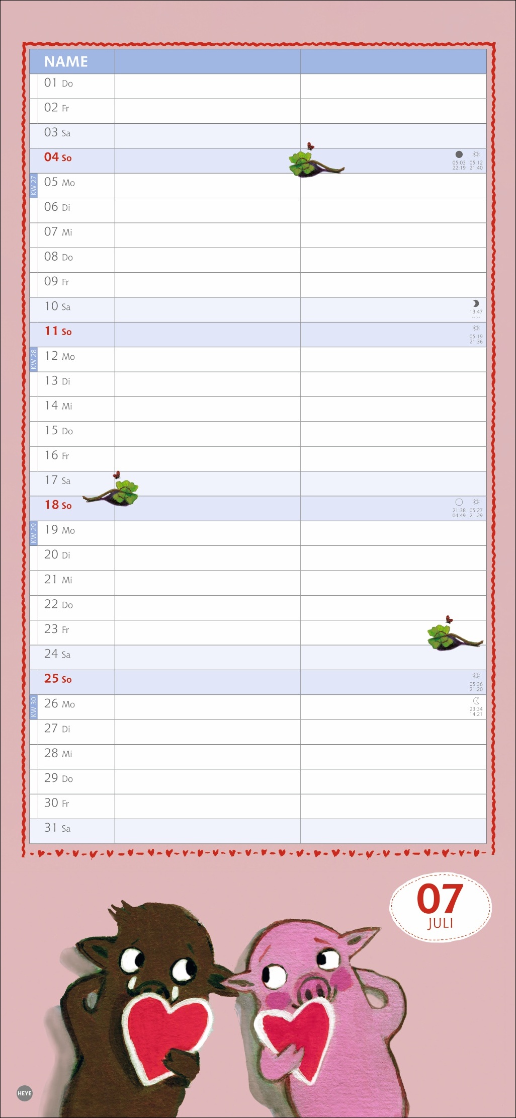 • Das verliebte Schweine-Pärchen in einem praktischen Terminkalender für die Wand im Format 16 x 34,7 cm