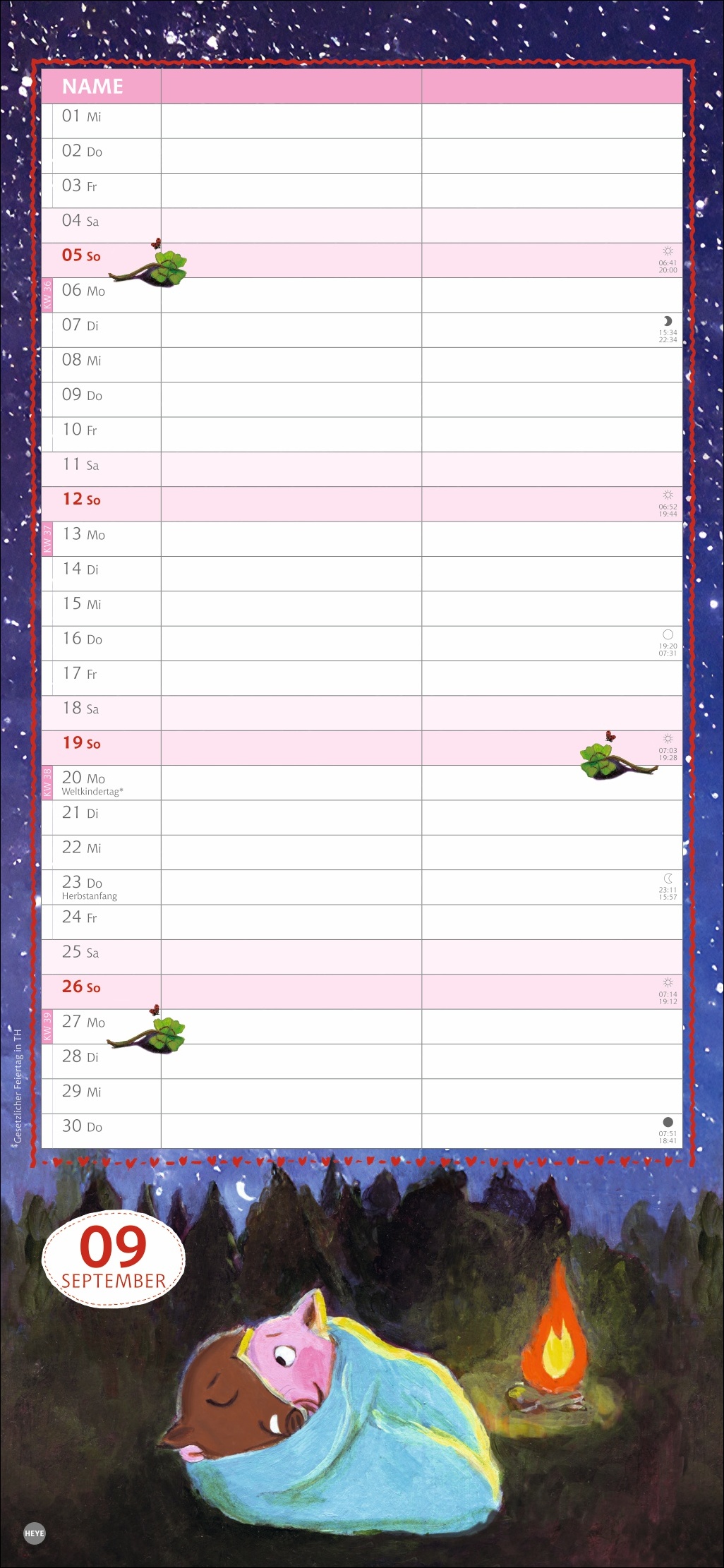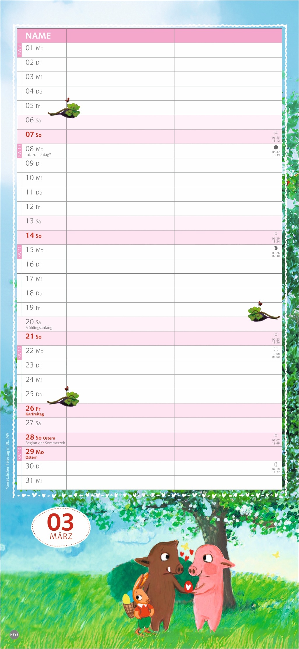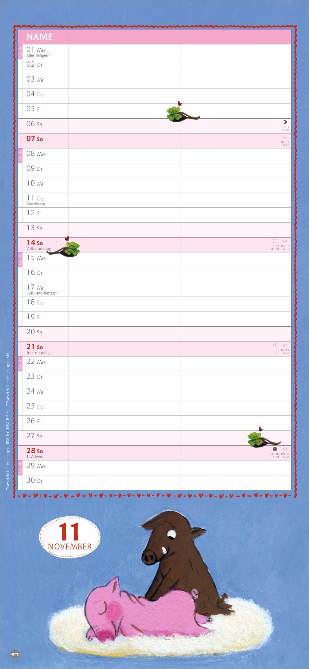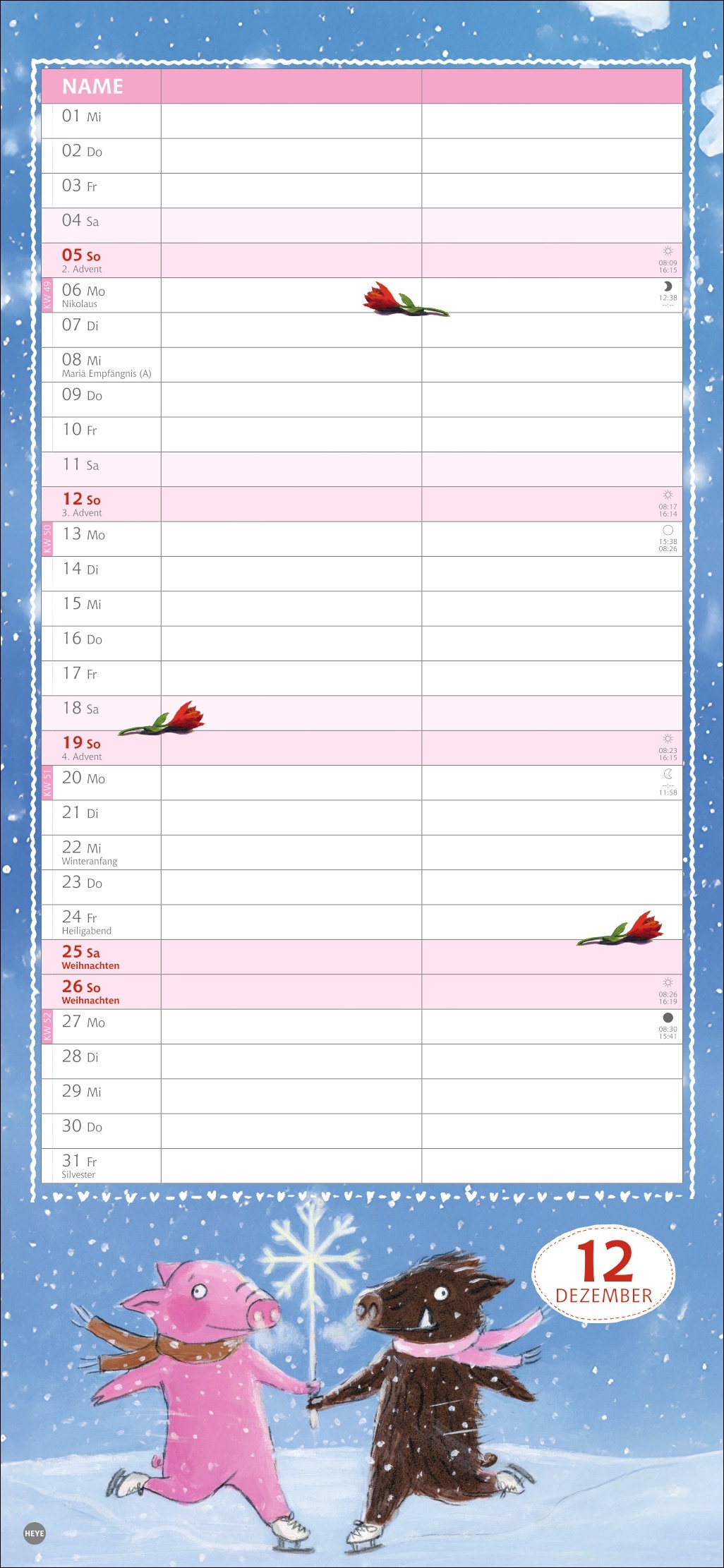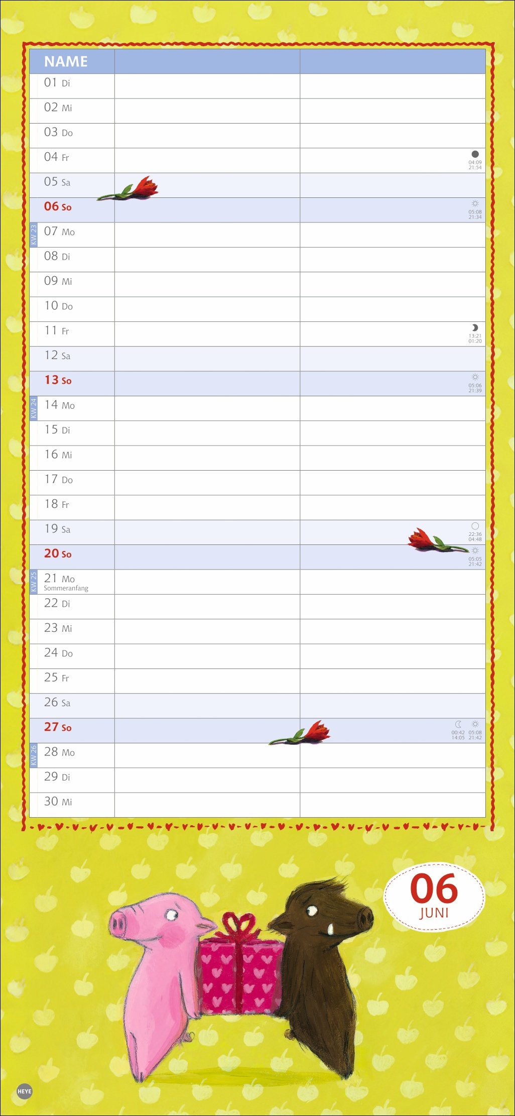 • Das verliebte Schweine-Pärchen in einem praktischen Terminkalender für die Wand im Format 16 x 34,7 cm