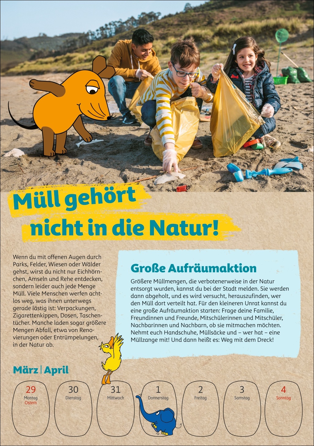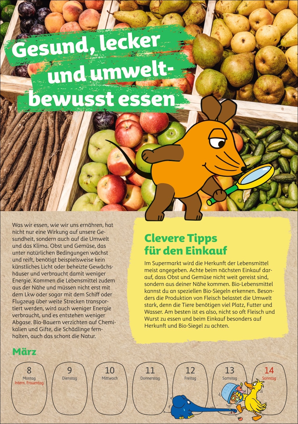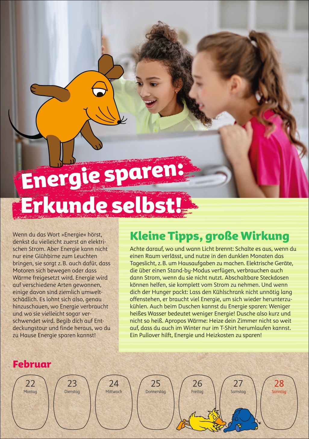 • Umweltbildung ab 6 Jahren im Wochenplaner: kindgerecht präsentiert von der Maus, bekannt aus den Lach- und Sachgeschichten