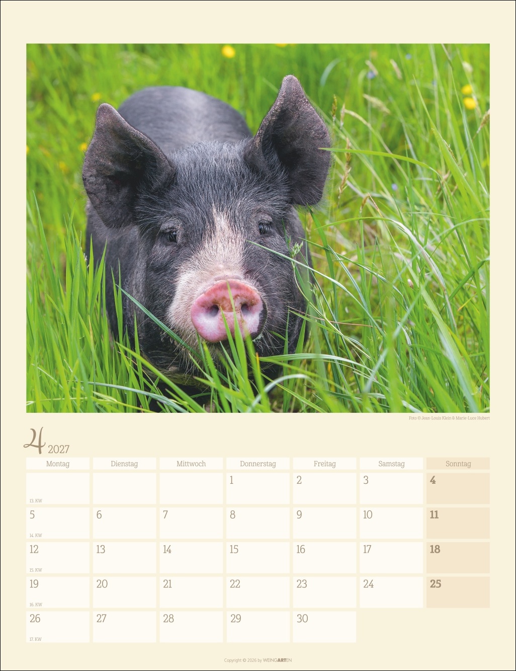 • Grunz-vergnügt: der Fotokalender 2027 mit glücklichen Schweinen im Format 30 x 39 cm