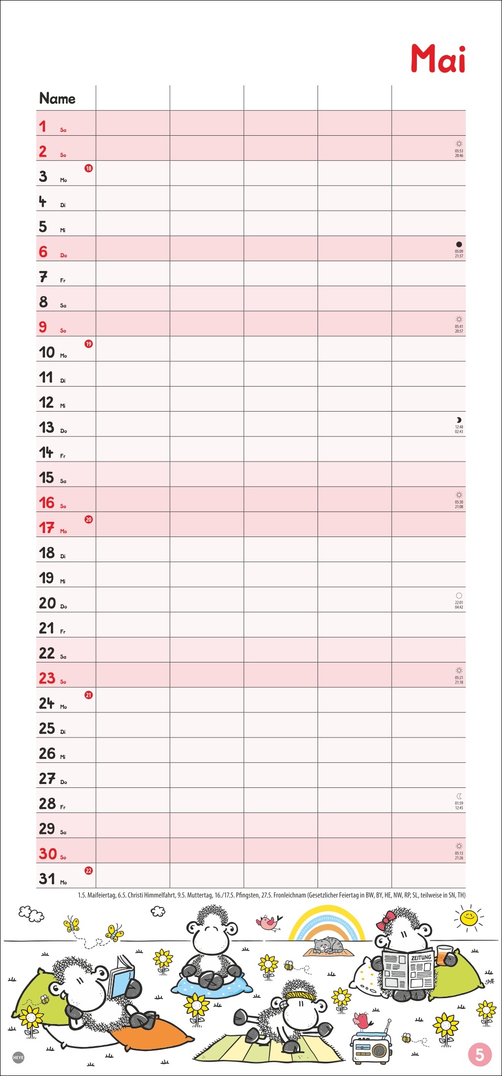 • Für alle, die richtig was vorhaben – unser erfolgreiches Konzept für Familienkalender: 5 Spalten mit ausreichend Platz zum Austoben, im übersichtlichen 21 x 45 cm Format