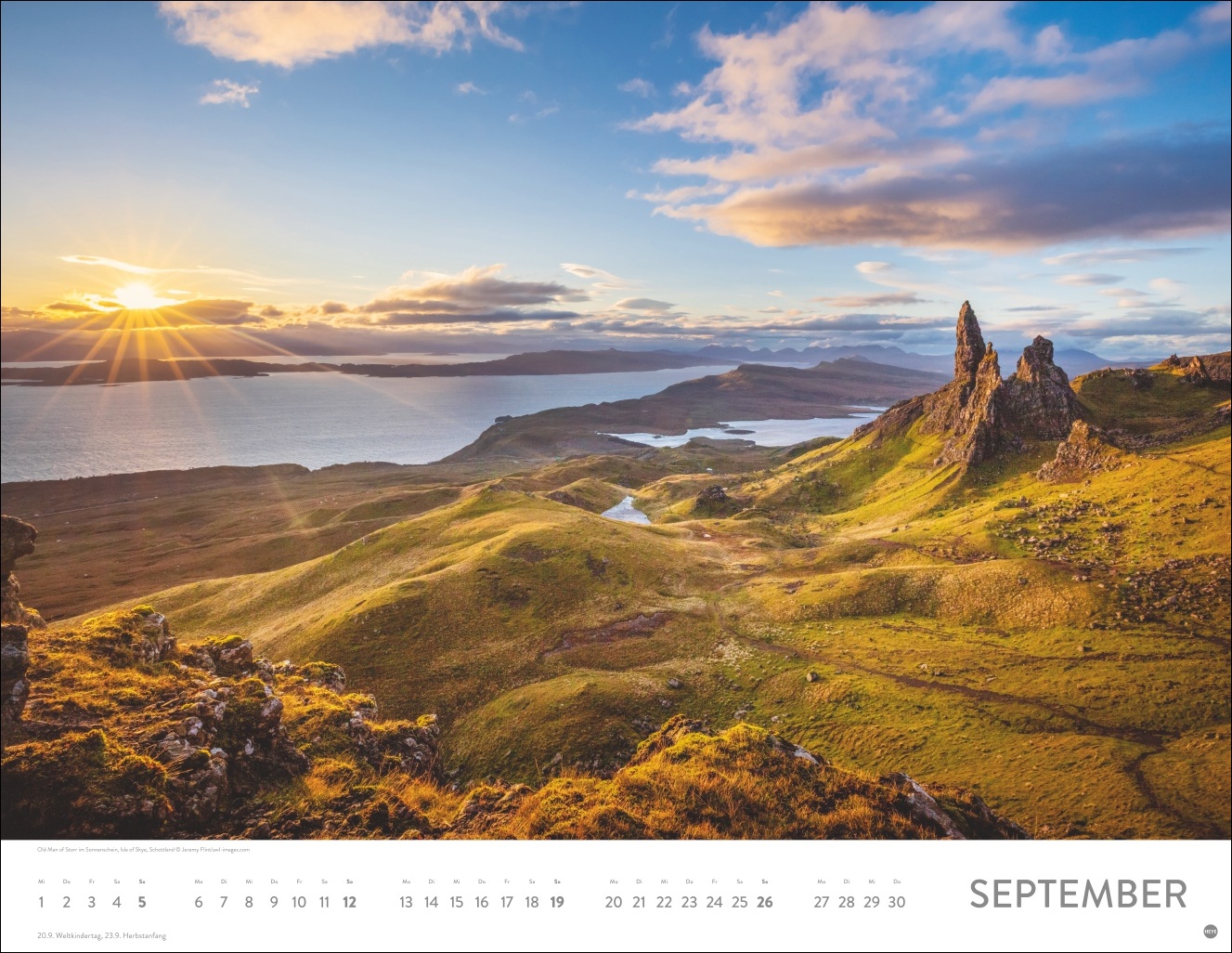• Von Sonnenaufgang bis Sonnenuntergang stets ins rechte Licht gerückt: Monatskalender mit dem faszinierenden Farbenspiel der Sonne