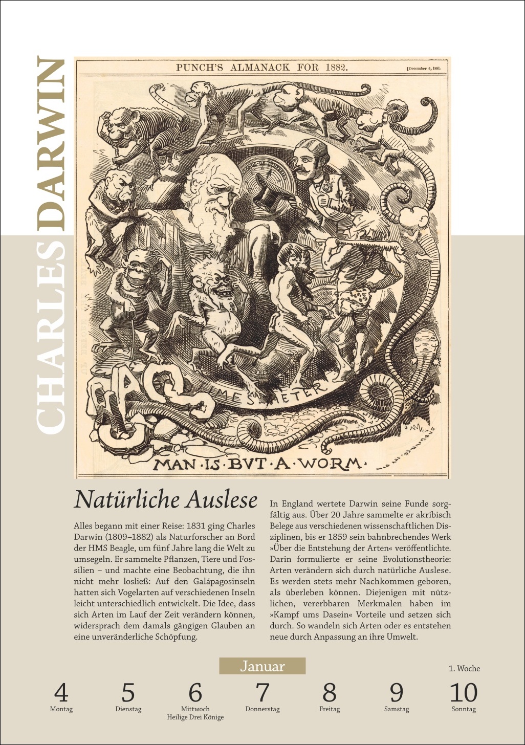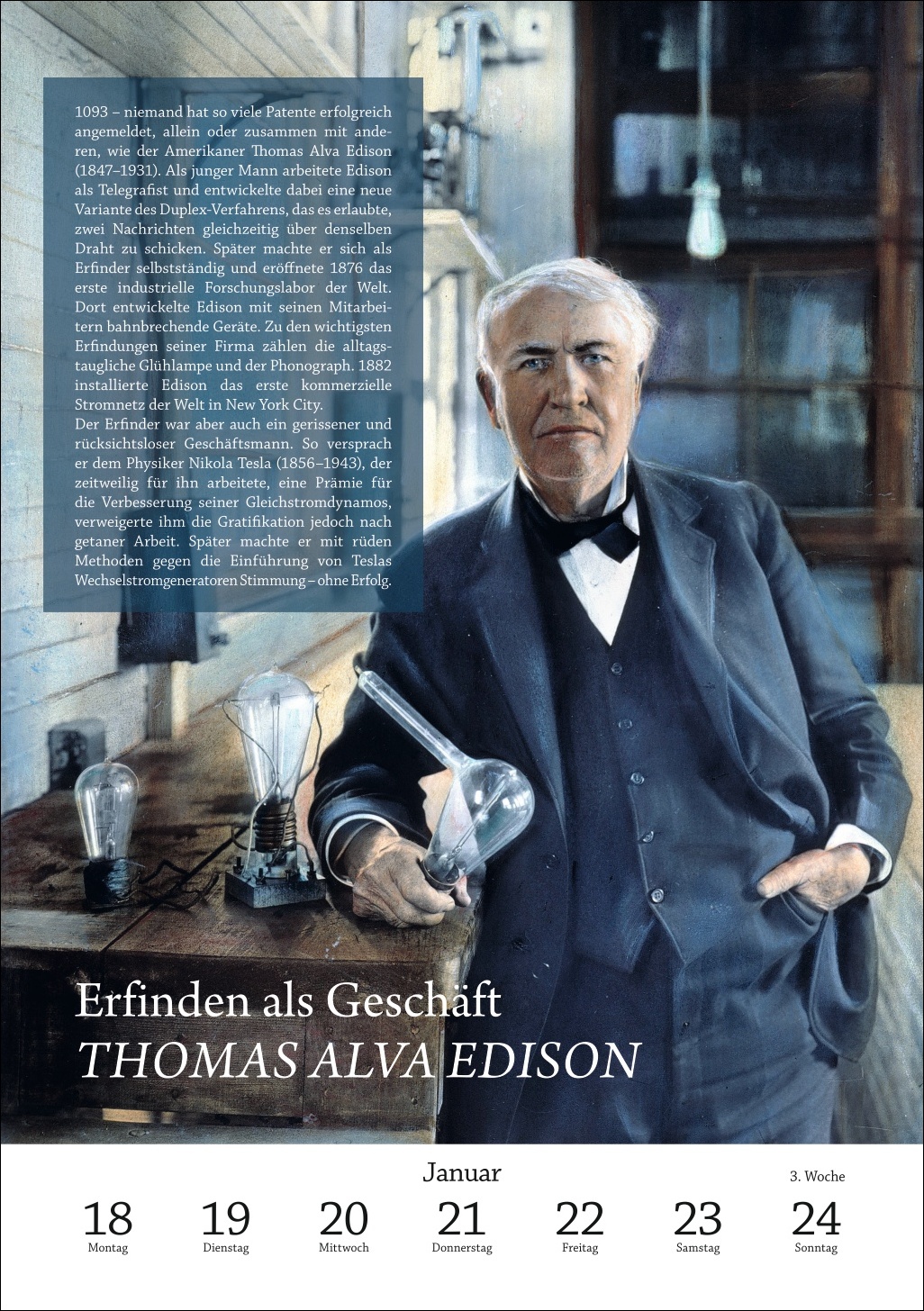 - Von Geistesblitzen, die die Welt veränderten: Dieser Kalender erzählt Woche für Woche, wie Erfinderinnen und Forscher mit ihren Entdeckungen die Menschheitsgeschichte neu schrieben