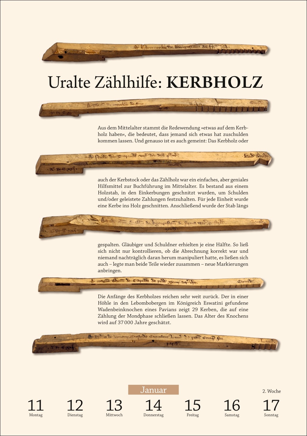 - Woche für Woche aufs neue Staunen: Kulturkalender im Format 25 x 35,5 cm mit Meilensteinen der Geschichte