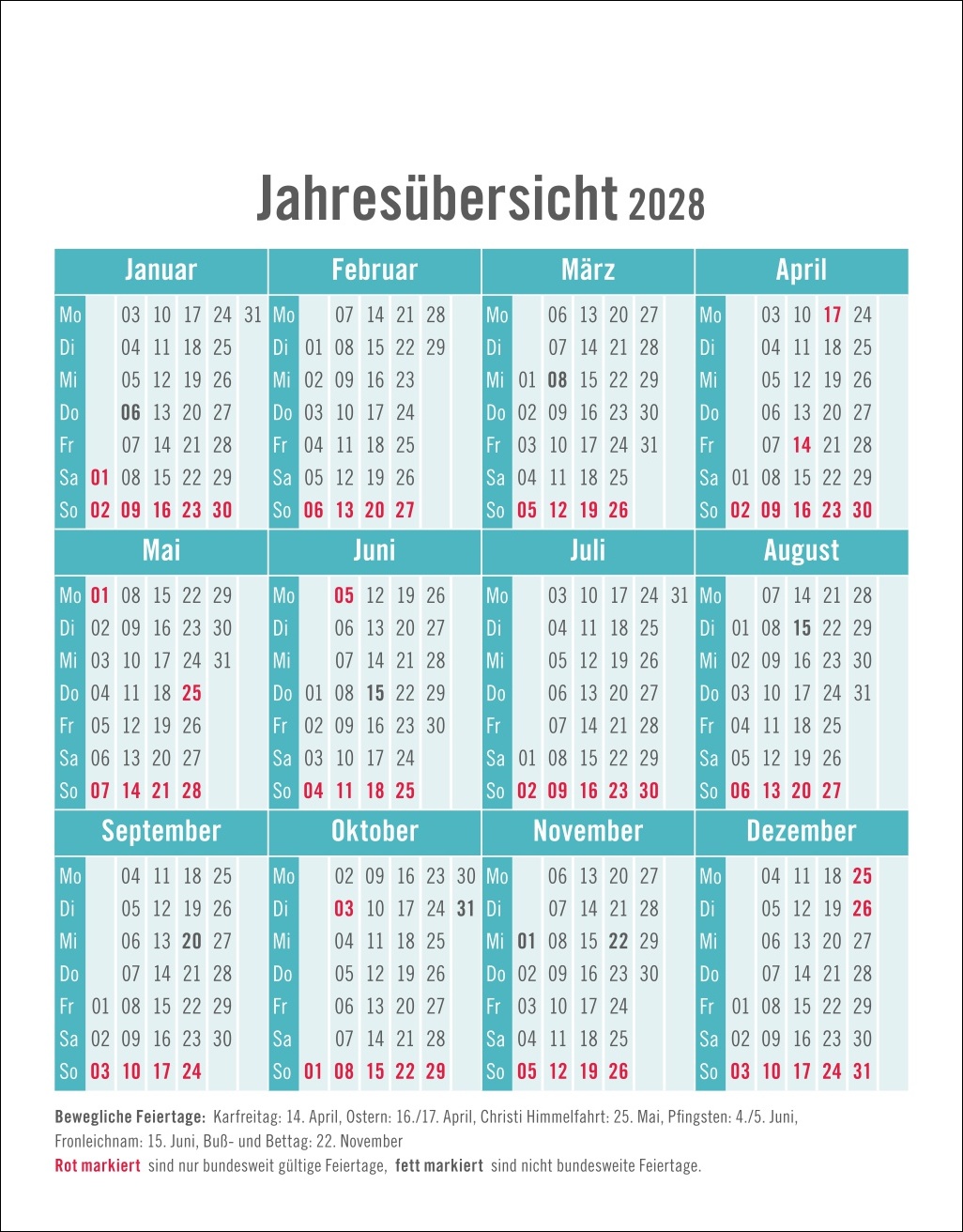 - Findet Platz auf jedem Nacht- oder Küchentisch: Kalender zum Aufstellen im kompakten Format 12,5 x 16 cm