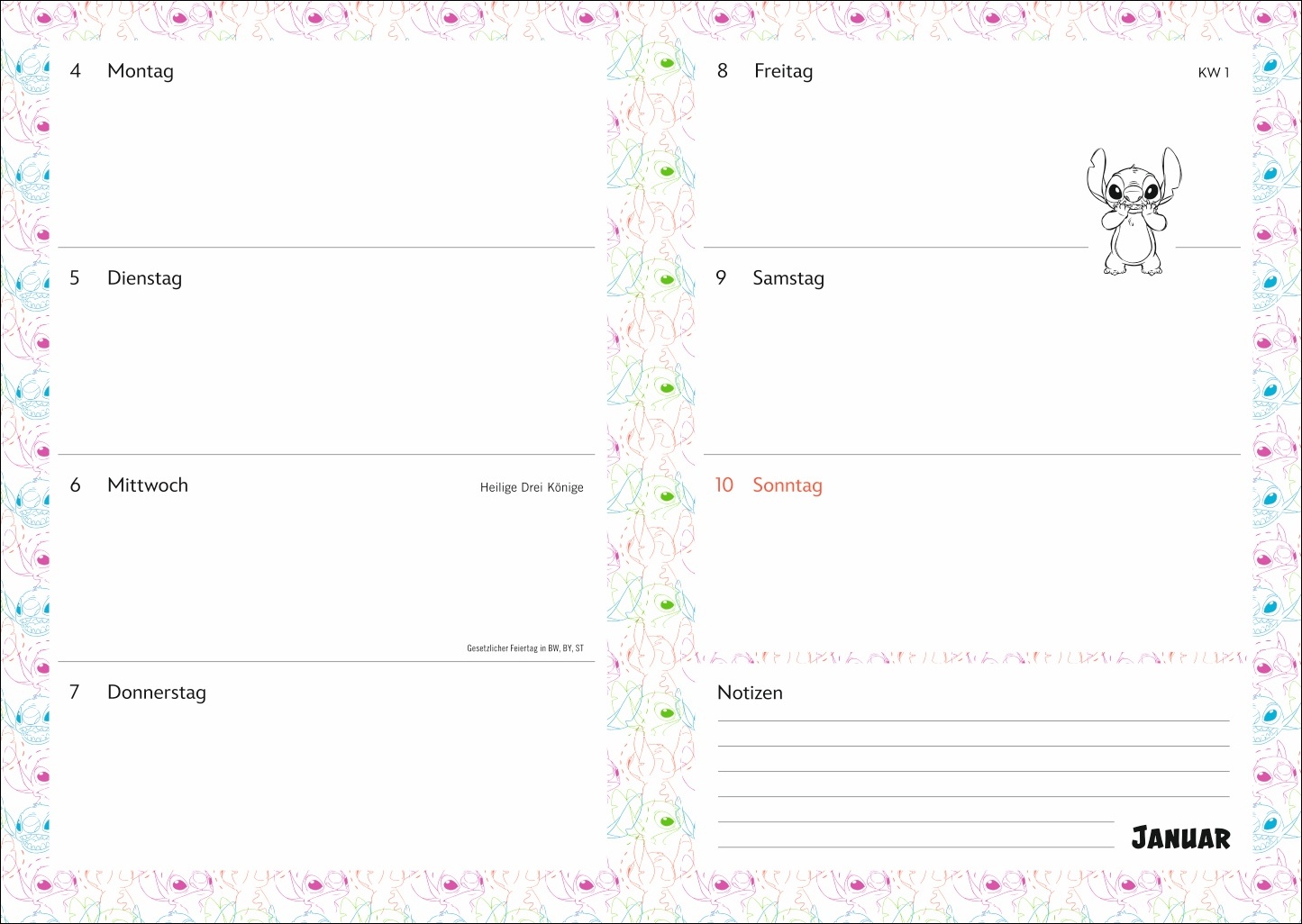 • Gut organisiert in der Schule mit Stitch: der Taschenplaner für das Schuljahr 2026/27