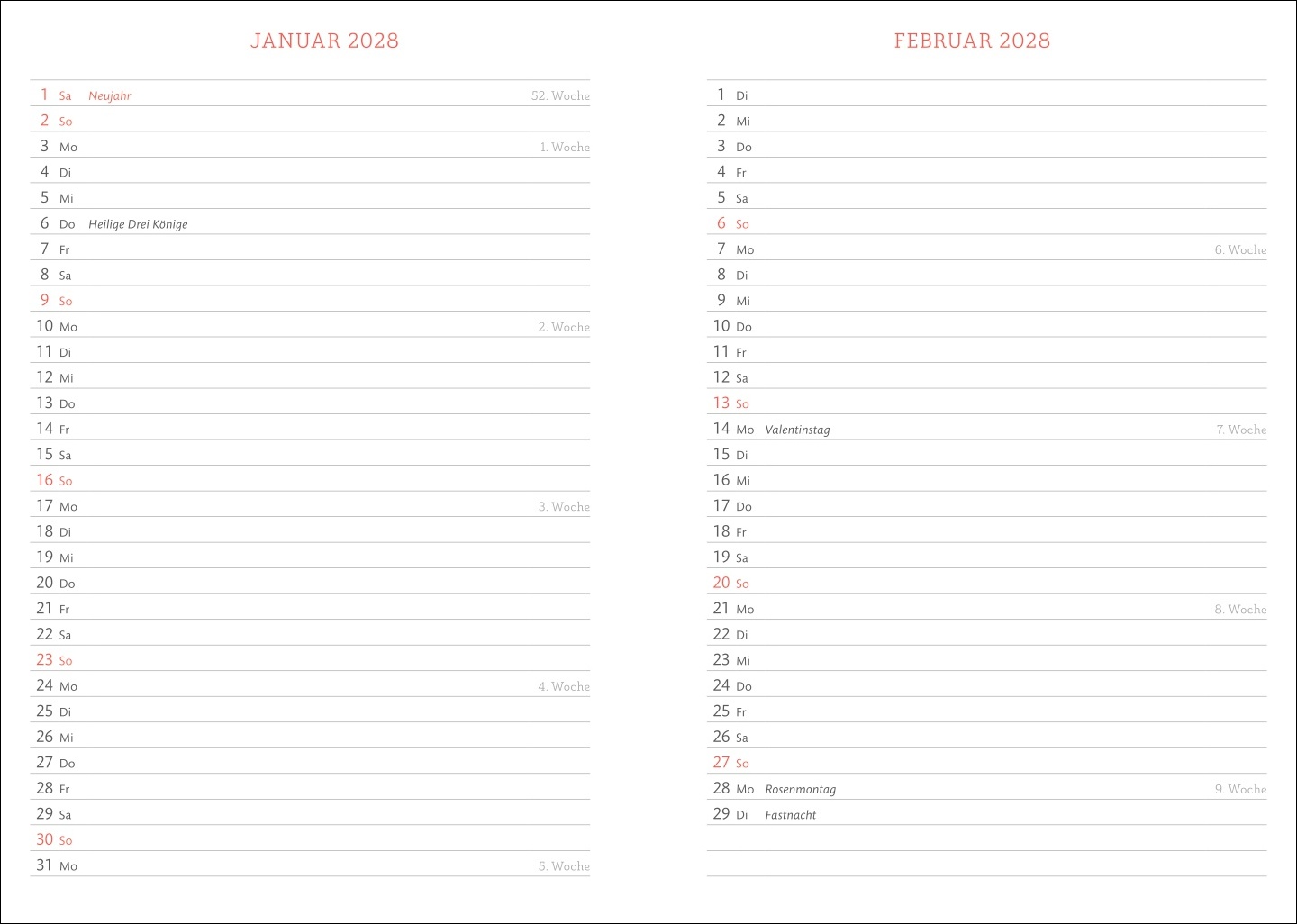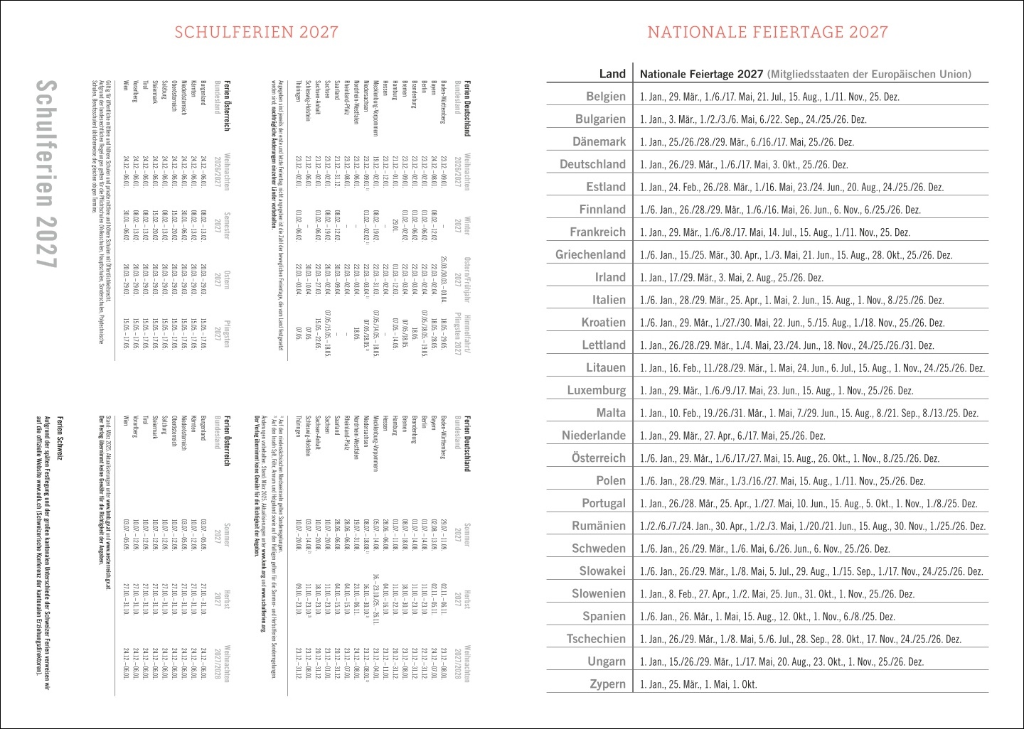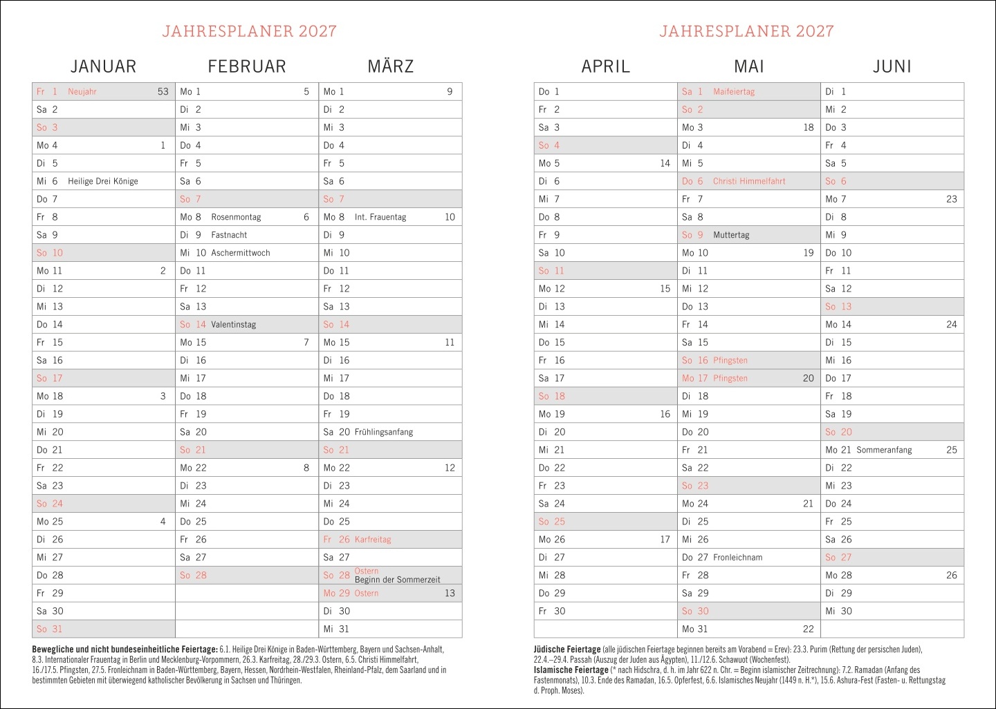 • Das Büro für unterwegs: Taschenkalender mit zahlreichen Extras wie Jahresübersichten 2027 und 2028, Schulferien und Geburtstagsübersicht