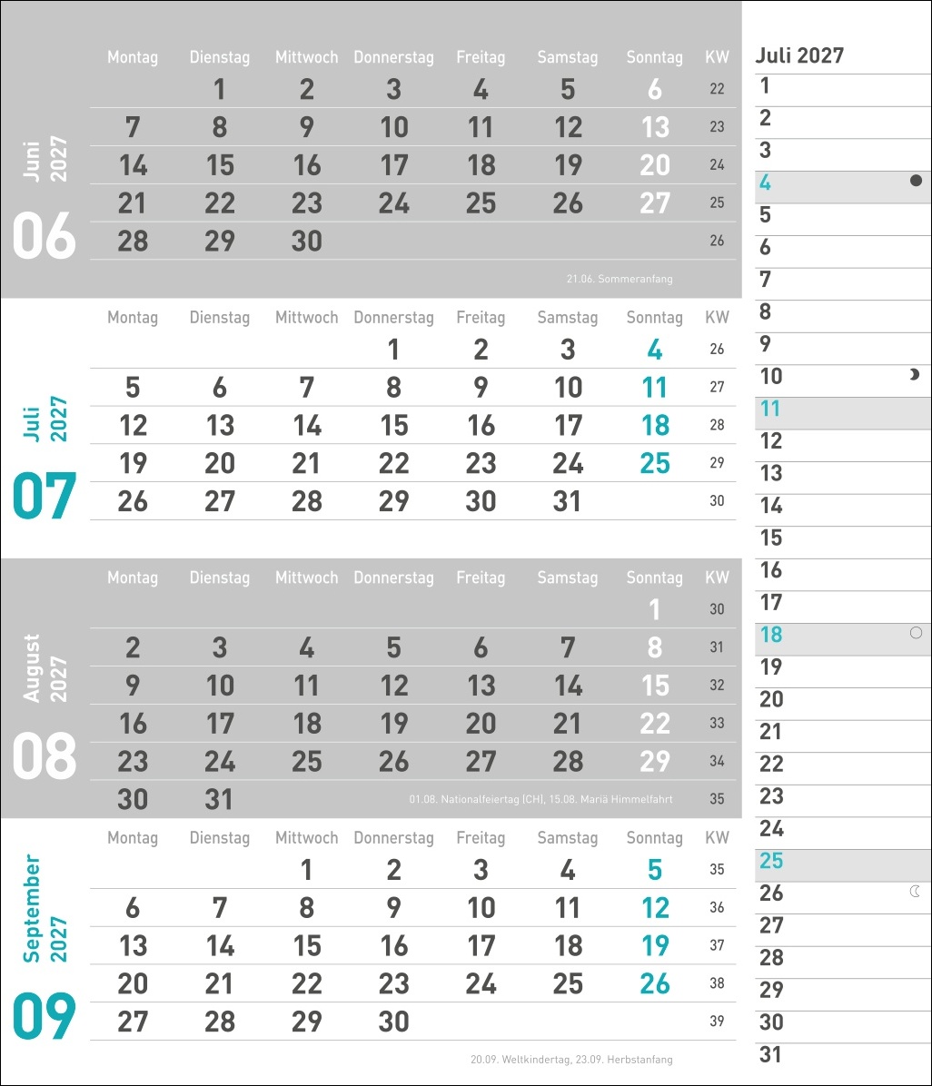 - Volle Konzentration auf das Wesentliche: 4-Monats-Kombiplaner mit einer Spalte für Notizen und Datumsschieber