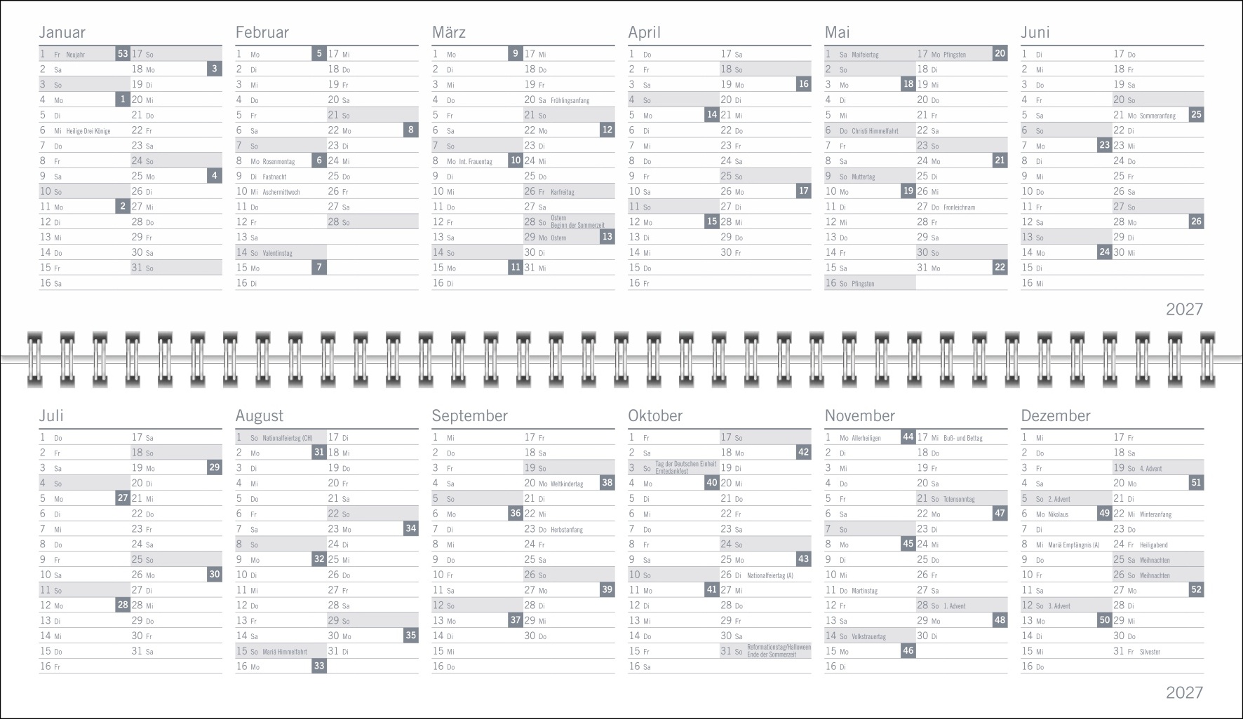 - So geht Planen praktisch von alleine: Spiral-Kalender 2027 für alle wichtigen Meetings, Verabredungen und Geburtstage der Woche