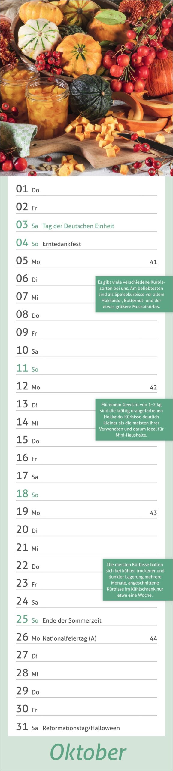 Praktischer Langplaner mit hübschen und appetitlichen Food-Motiven. Mit zusätzlichen Tipps und übersichtlichem Kalendarium für Eintragungen.