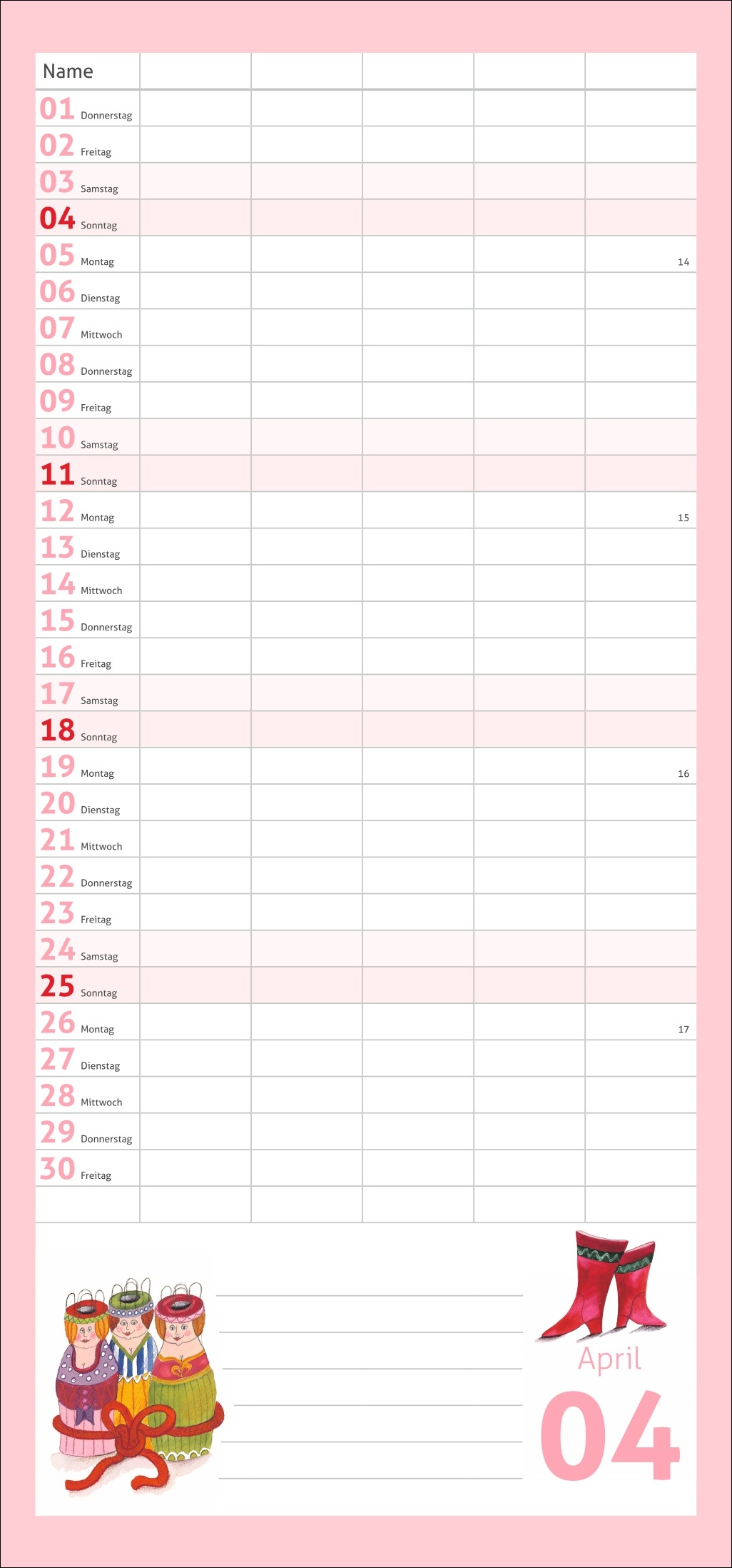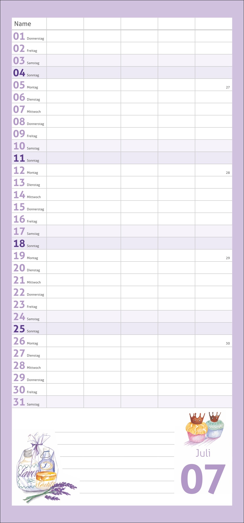 - Mehr Überblick mit unseren erfolgreichen Familienplanern: 5 Spalten Platz für Termine, Ferien- und Freizeitaktivitäten, im kompakten 21 x 45 cm-Hochformat