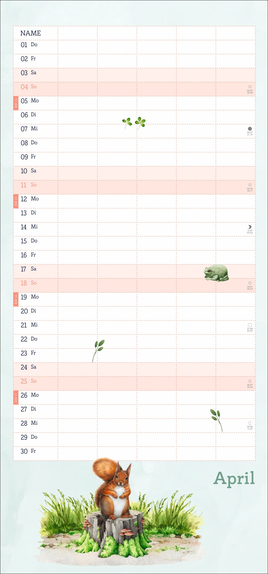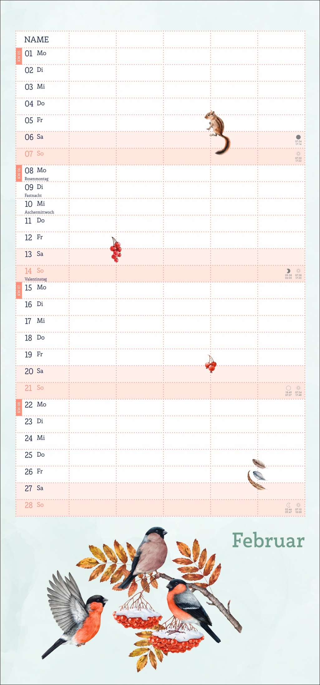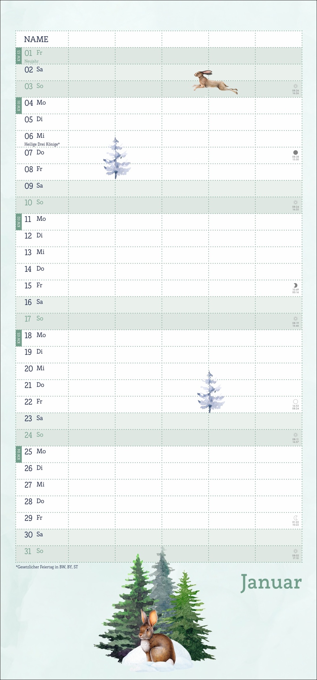 - Ein Blick in die Fauna des Waldes im Wandel der Jahreszeiten: Terminkalender im kompakten 21 x 45 cm Hochformat
