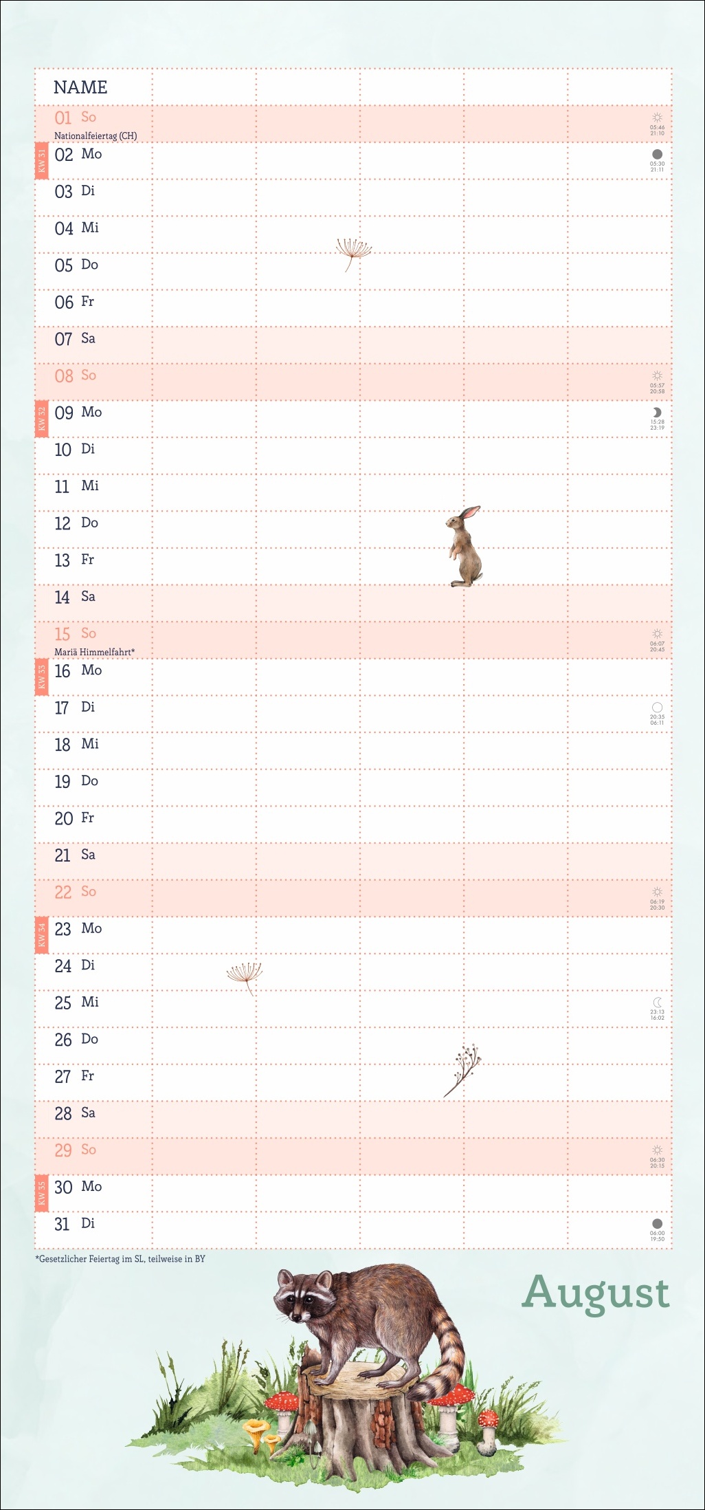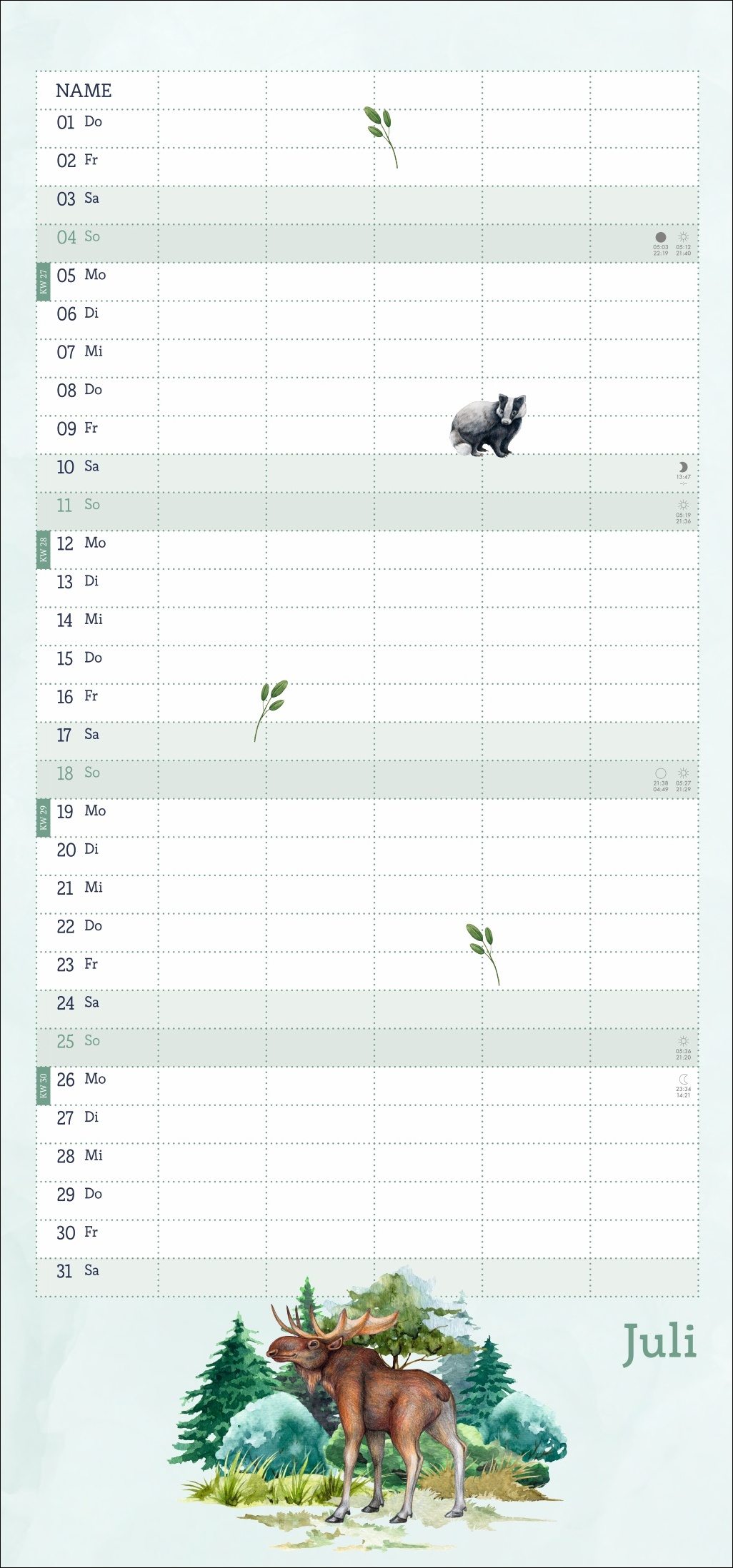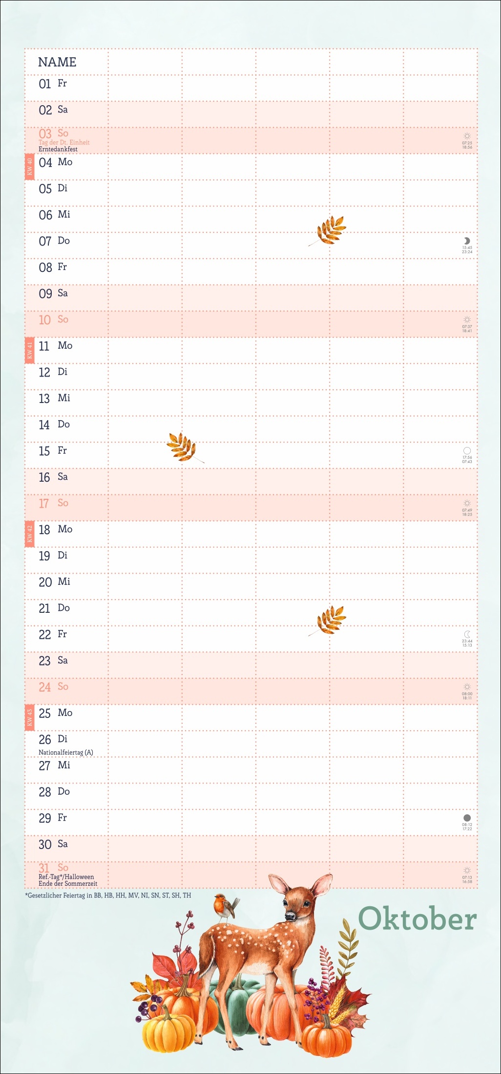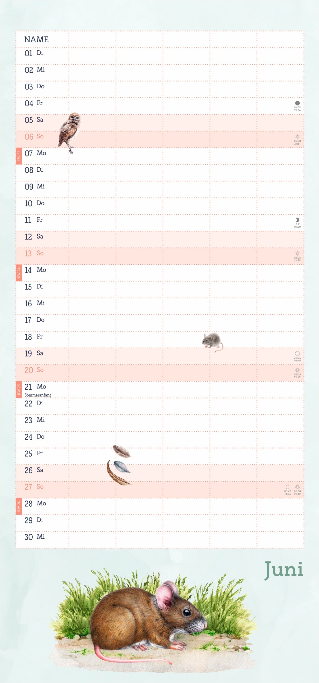 - Ein Blick in die Fauna des Waldes im Wandel der Jahreszeiten: Terminkalender im kompakten 21 x 45 cm Hochformat