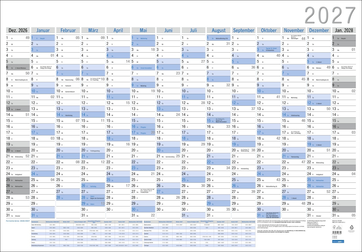 - Ferienübersicht, Arbeitstagezählung und 14 Monate Jahresübersicht: Der neutrale Kalender im Format 98 x 68 cm lenkt den Blick aufs Wesentliche