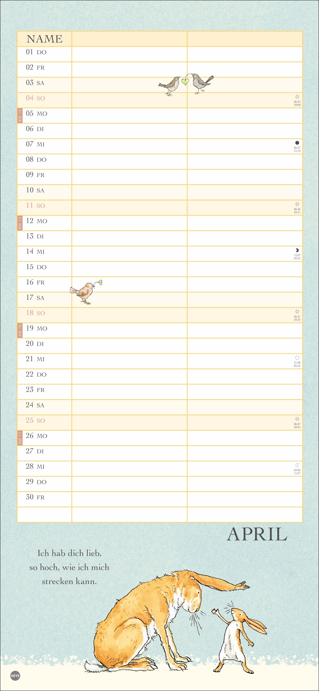 - Ein Wandkalender voller Liebe: Der Partnerplaner mit Zeichnungen und Zitaten aus dem berühmten Buch von Sam McBratney und Anita Jeram