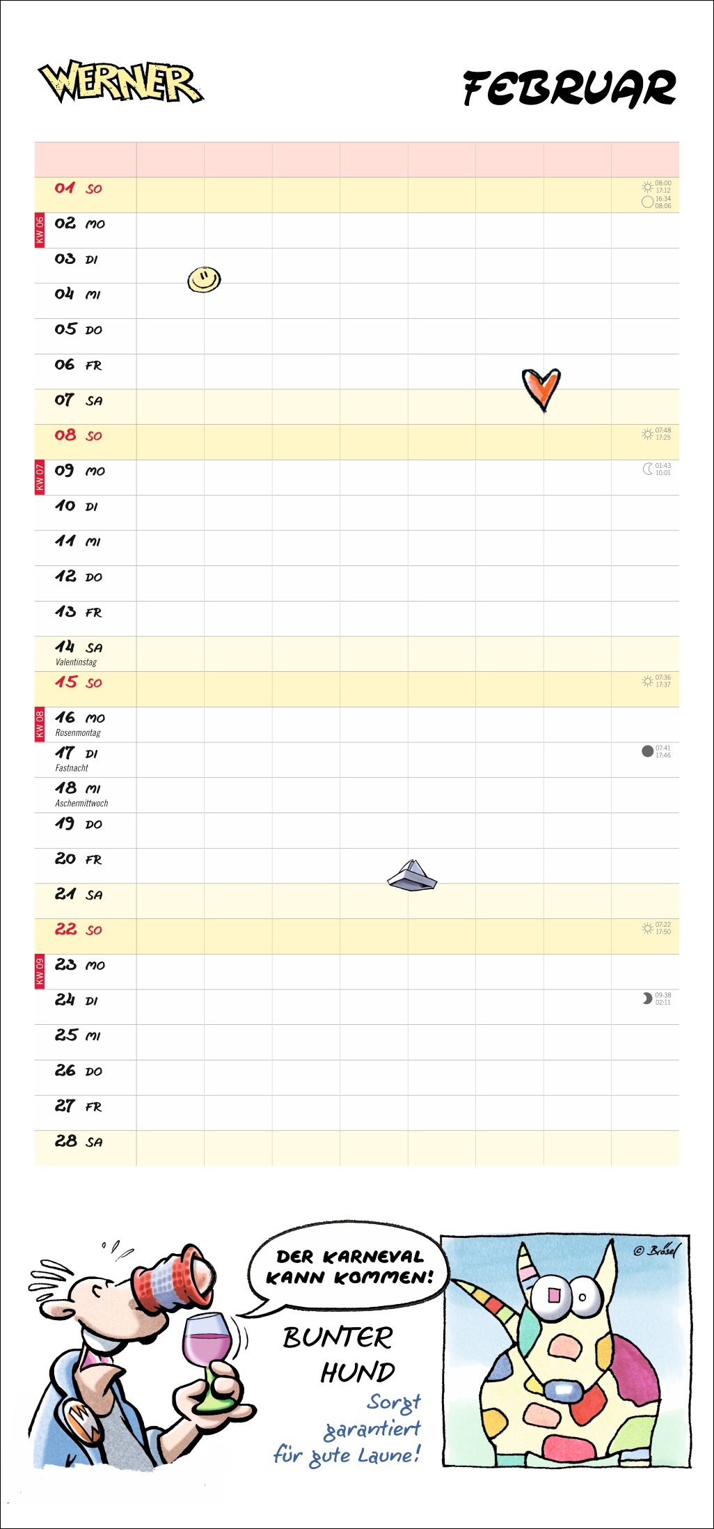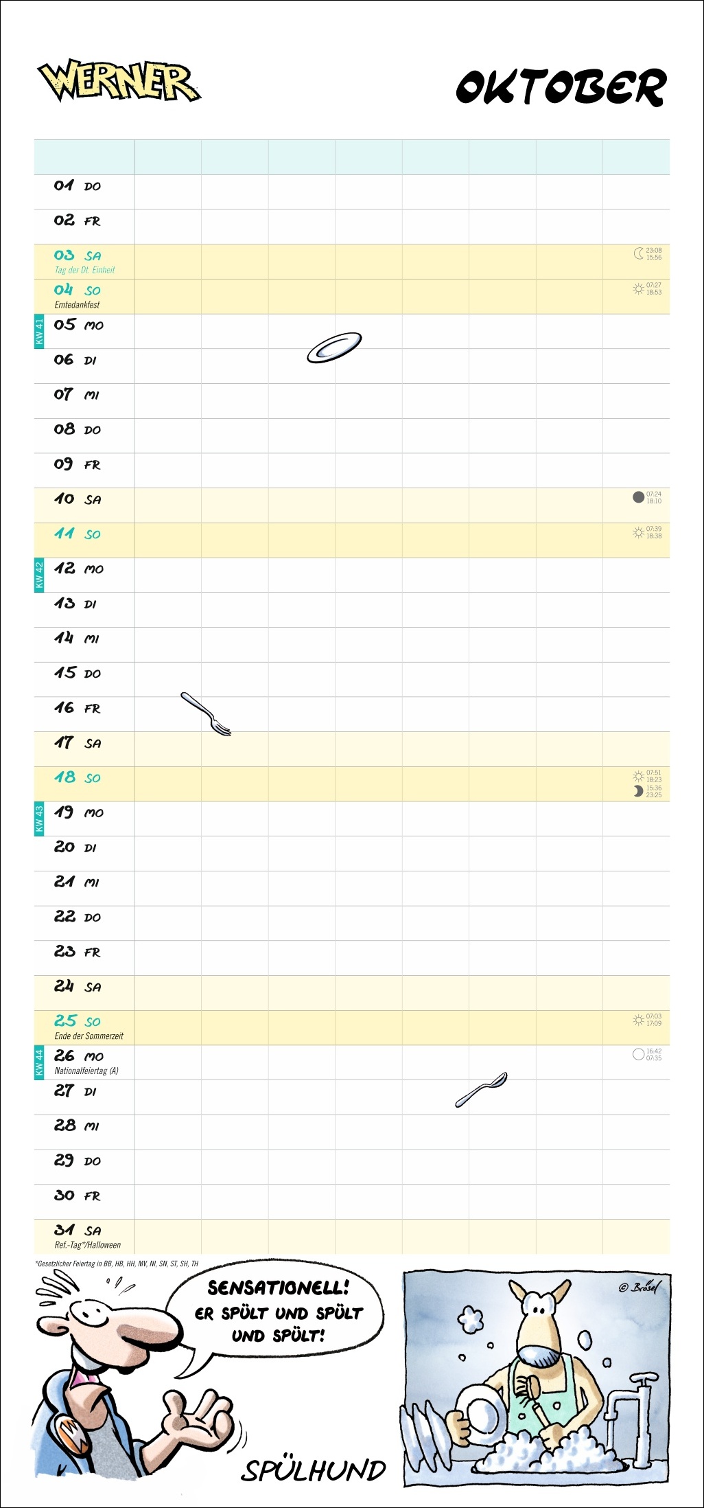 - Wo steigt die nächste Montage und wann muss neuer Bölkstoff her? Der praktische Monats-Planer mit coolen Sprüchen und dem einzigartigen Humor von Brösels Werner