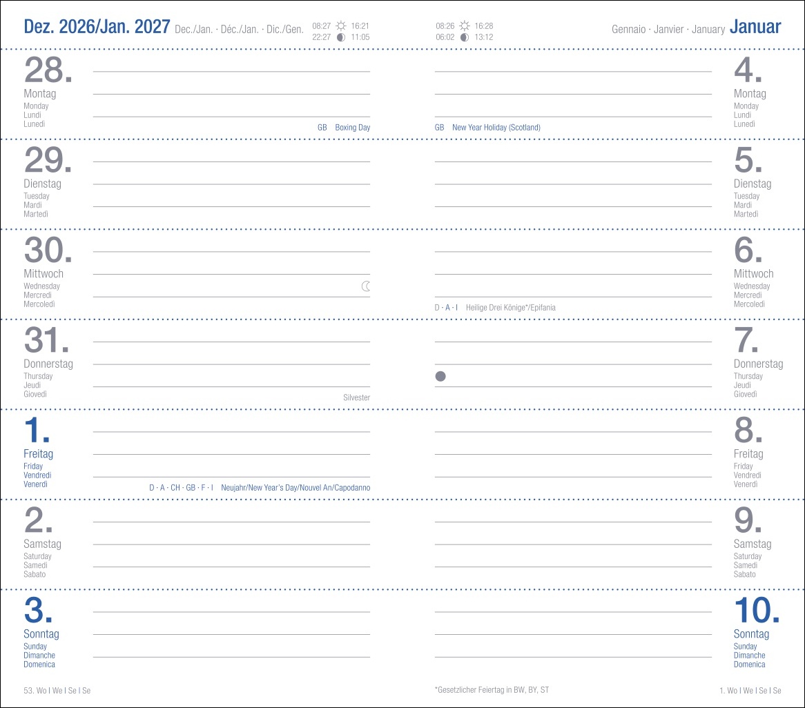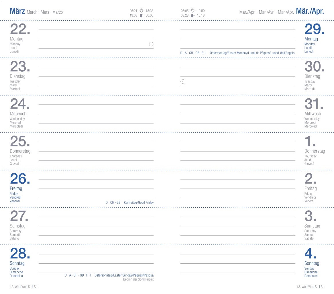 - Bringt Struktur in den Alltag: Timer im klassischen Schwarz mit viersprachigem Kalendaium, Schulferien sowie nationalen Feiertagen