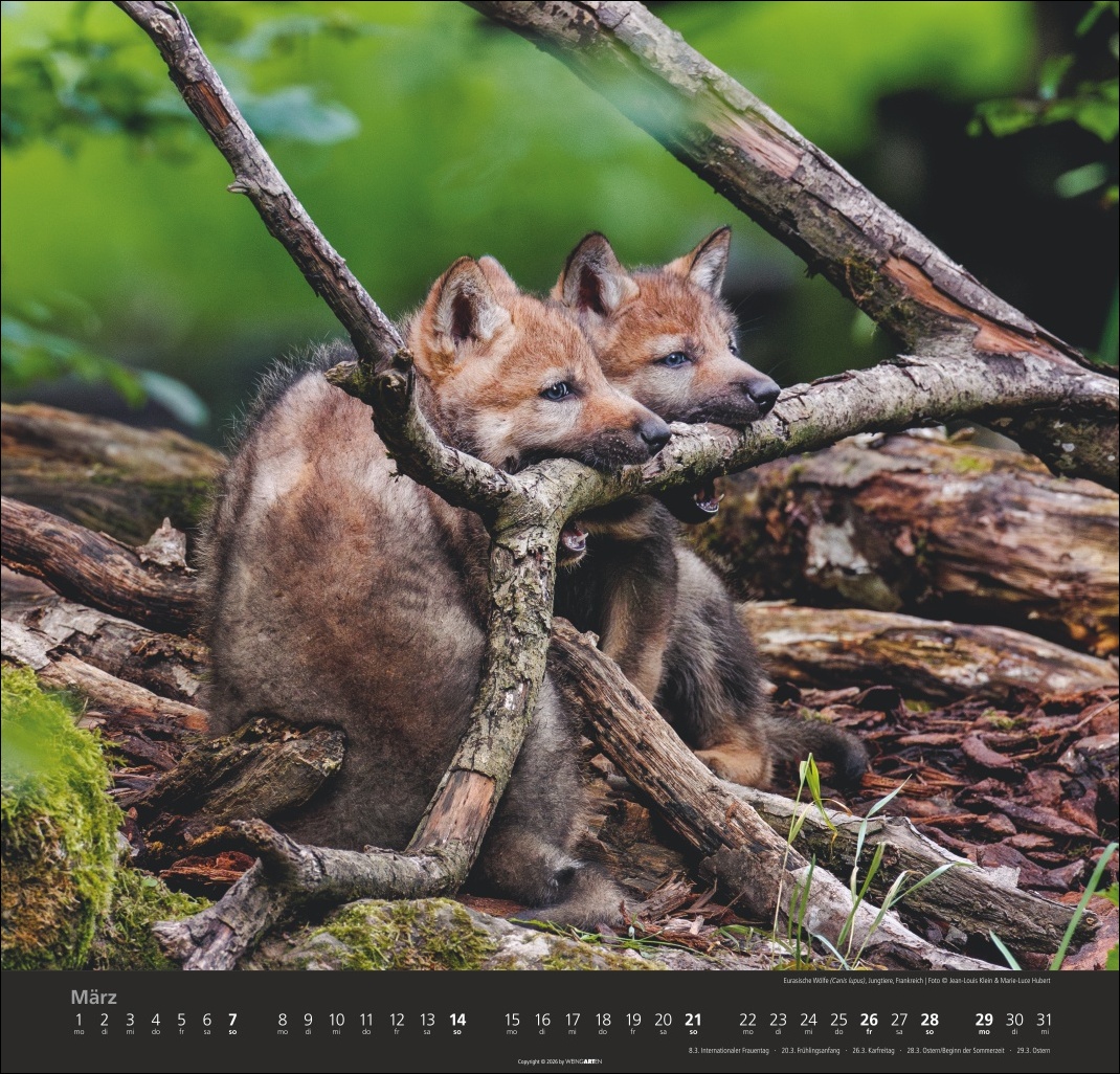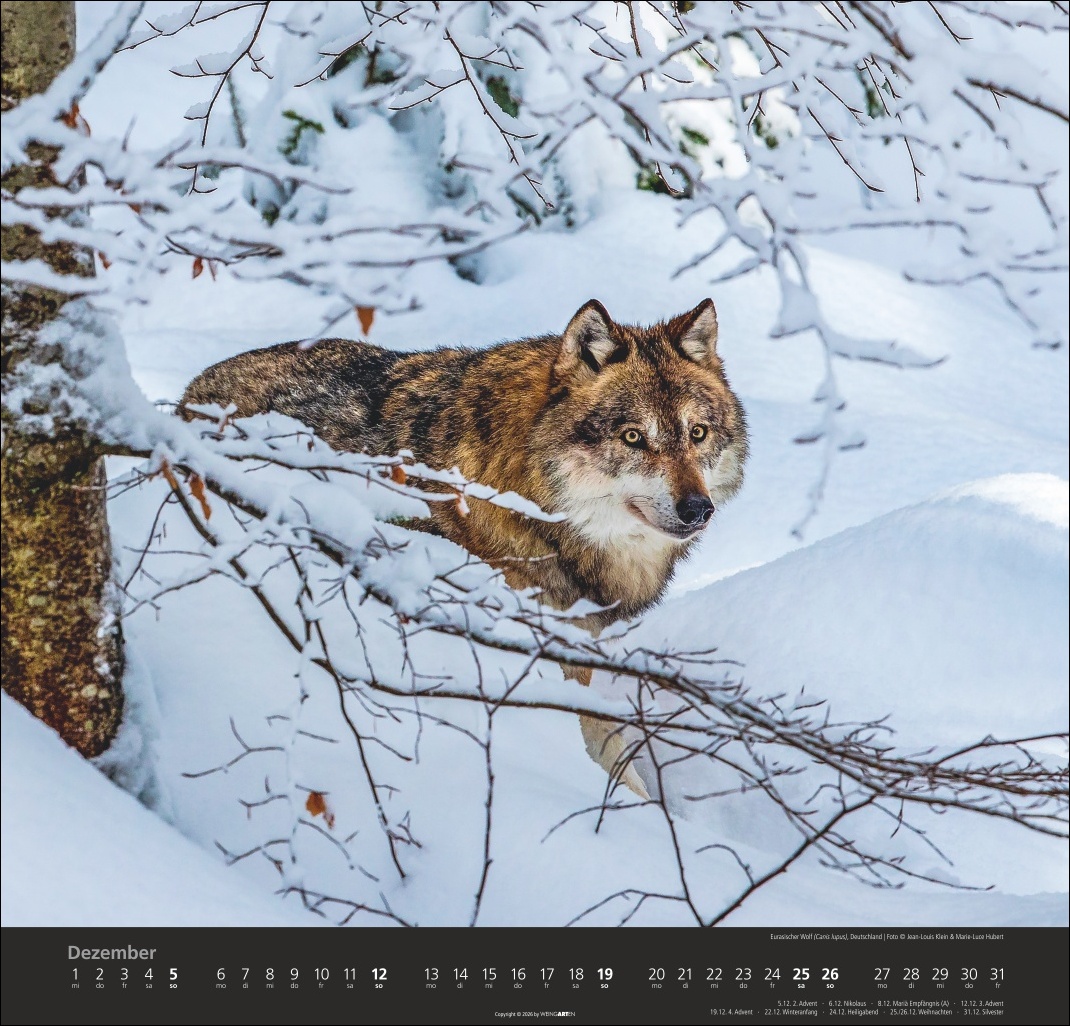 - Scheue Wildtiere in faszinierenden Bildern: der Wolf im Jahres-Wandkalender 2027